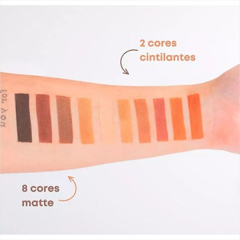 Dalla Paleta de Sombras Nude 8g - O Toque Perfeito para Seus Olhos Descubra a Dalla Paleta de Sombras Nude, um produto essencial para quem busca realçar a beleza dos olhos com sofisticação e versatilidade. Composta por 10 tonalidades que vão do matte ao cintilante, esta paleta é ideal para criar looks que variam do natural ao poderoso, permitindo que você se expresse da forma que desejar. Ingredientes e Composição A fórmula da Dalla Paleta de Sombras é cuidadosamente elaborada com ingredientes de alta qualidade, como: Dimeticonol: Proporciona uma aplicação suave e uniforme; Etilhexilglicerol: Ajuda na hidratação da pele; Estearato de Magnésio: Garante uma textura sedosa e fácil de esfumar; Silica e Talco: Proporcionam uma excelente fixação e acabamento. Modo de Usar Para um acabamento perfeito, utilize um pincel adequado e aplique a sombra sobre a pálpebra, construindo a intensidade desejada. Experimente misturar diferentes cores para um visual único e personalizado! Benefícios Com a Dalla Paleta de Sombras Nude, você desfruta de: - Alta pigmentação que garante cores vibrantes; - Longa duração, mantendo seu olhar impecável por horas; - Produto vegano e livre de crueldade, respeitando a natureza e os animais; - Sem parabenos, ideal para todos os tipos de pele. Indicação Esta paleta é perfeita para todas as mulheres que desejam um produto prático e versátil, ideal para o dia a dia ou ocasiões especiais. Se você busca um olhar marcante e sofisticado, a Dalla Paleta de Sombras Nude é a escolha certa para você! Principais Dúvidas Todos os produtos Dalla são 100% originais e possuem selo de qualidade. Em caso de sensibilidade, recomenda-se descontinuar o uso e consultar um médico. Mantenha fora do alcance de crianças e armazene em local seco e fresco. Sobre Nós Na Negabella, nossa missão é oferecer produtos de beleza de alta qualidade e com garantia de procedência. Desde 2018, trabalhamos para realçar a beleza e a autoestima das mulheres com itens que seguem as últimas tendências de mercado. Se você deseja presentear alguém especial, basta nos informar após a compra e cuidaremos da embalagem com carinho. Venha fazer parte do nosso universo da beleza!