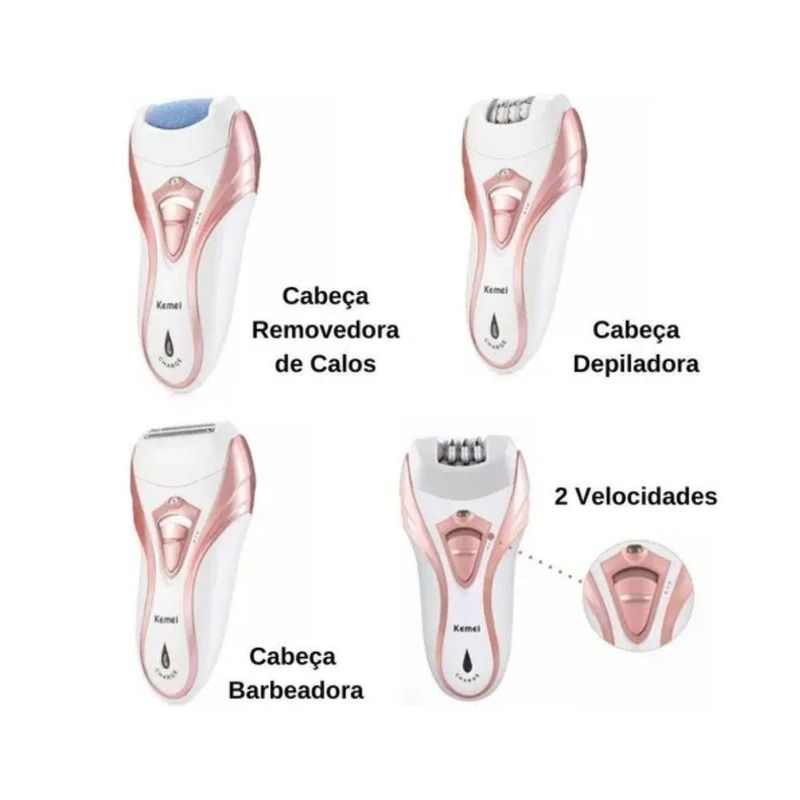 Depilador Aparador De Pelos Elétrico, Lixa Para Os PésCódigo de barras: 6955549330108 Depilador Aparador de Pelos Elétrico, Lixa Para os Pés 3 em 1 Bivolt Marca: Kemei - Cabeça de barbear e depilação: Ajuda a remover os pelos indesejados de braços, pernas, as axilas, linha do biquíni e outras áreas sensíveis de forma fácil e eficaz. - Remove os pelos sem cortes, torna a sua pele suave como a seda e cabelo-frete por várias semanas. Para remover as cabeças: - Clique no botão e pressione o botão suavemente, a cabeça vai separar automaticamente a partir do corpo, conveniente para substituir e limpar essas cabeças. 1 - O corpo e o adaptador não são à prova d' água, deve mantê-los secos; mas a cabeça pode ser removido para lavagem. 2 - Não use ou coloque este produto perto de banheiras, pias, e outros recipientes que contenham água. Especificação: Material: ABS + Aço Inoxidável Entrada: 110-220V Bivolt Saída: 3V - 800mA Tipo de bateria: Bateria recarregável Ni-MH Tempo de carregamento: 8 horas Tempo de uso: 40 minutos Cor: Rosa / Branco Adaptador de comprimento do cabo: 1.8 m Itens Inclusos: 1 - Lady depilador 1 - Cabeça de Lixa para os pés 1 - Cabeça para depilar 1 - Cabeça De Corte com capa protetora 1 - Adaptador 1 - Escova De Limpeza Medidas da embalagem: L: 22,5 x C: 8,0 x A: 20,5cm Peso do Produto: 380g