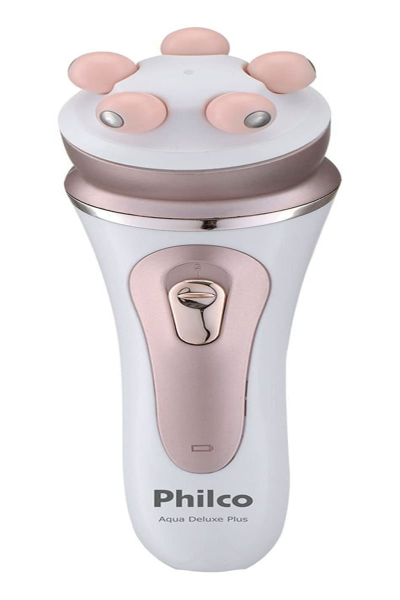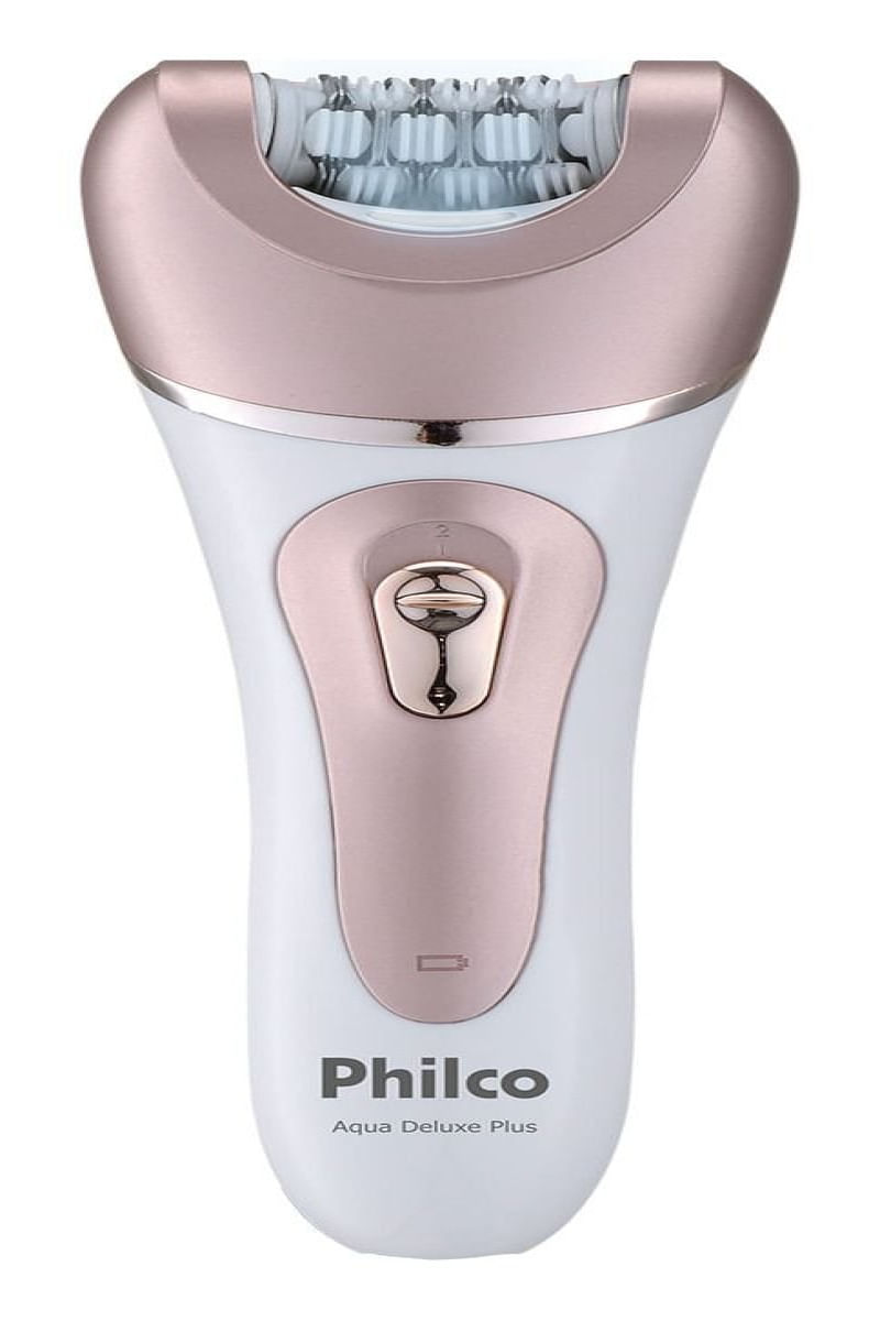 Depilador Philco Aqua Deluxe Plus Pdp02r Cor Branco/Rosa Bivolt - DEPILAÃÃO PERFEITA PARA O CORPO E O ROSTO, COM PRATICIDADE E CONFORTO! O Depilador Aqua Deluxe Plus PDP02R da Philco é a solução ideal para quem busca uma depilação eficaz, sem dor e com praticidade. Este depilador elétrico, de uso seco ou molhado, pode ser utilizado no corpo e no rosto. O Depilador Aqua Deluxe Plus PDP02R conta com 2 velocidades, permitindo ajustar a intensidade da depilação conforme a necessidade. Resistente à água, facilita a limpeza e o uso durante o banho. Acompanha 9 acessórios, que possibilitam depilar diferentes áreas do corpo e rosto com precisão e conforto. ------------------------------------------- DIMENSÃES E PESO DO PRODUTO: Altura: 16 cm Largura: 7 cm Comprimento: 4 cm DIMENSÃES E PESO DA EMBALAGEM: Altura: 21 cm Largura: 24 cm Comprimento: 6,5 cm Acessórios incluÃdos: Adaptador escova de esfoliação, Adaptador esticador, Adaptador massageador, Adaptador para rosto, Adaptador para áreas sensÃveis, Cabeça barbeadora, Cabeça depiladora, Cabeça massageadora, Pente aparador Modelo alfanumérico: PDP02R Ãreas do corpo: Ãreas sensÃveis, Axilas, Buço, Linha do biquÃni, Corpo, Rosto Marca: Philco Cor: Branco/Rosa Funções: Barbeador, Depilatória, Recortador Gênero: Sem gênero Quantidade de cabeças: 3 Inclui estojo: Não Inclui escova de limpeza: Sim à massageador: Sim à recarregável: Sim à apto para uso molhado: Sim à lavável: Sim à sem fio: Sim Linha: Depiladores Cor principal: Branco Modelo: Aqua Deluxe Plus Quantidade de velocidades: 2 Tipos de cabeças: RemovÃvel Tempo de uso: 24 m Voltagem: 127/220V Com conversão de voltagem automática: Sim Com sistema opti light : Não Características Gerais do Produto: Garantia: • 3 Meses