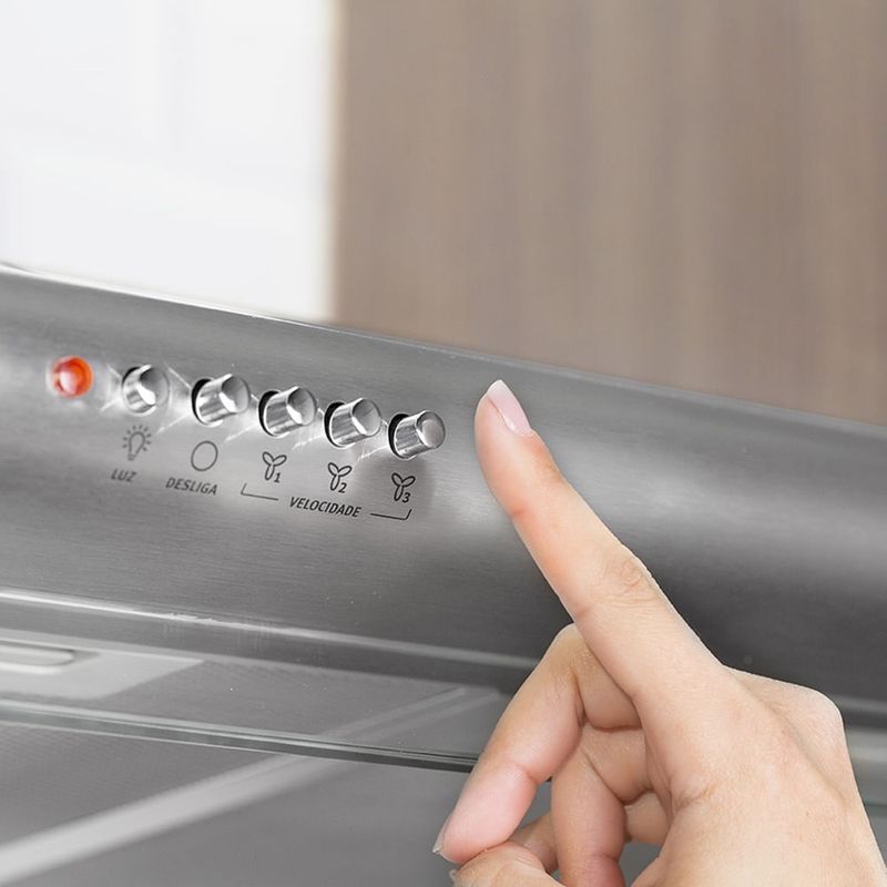 O Depurador DE80X possui um design moderno e compacto para combinar perfeitamente com o fogão. Feito em aço, é durável e fácil de limpar. Com controle por botões que permitem selecionar a velocidade desejada, o filtro metálico absorve a gordura e é facilmente lavável. Além disso, possui uma Máscara Captadora de Ar que elimina a fumaça. * Compativel com fogões e cooktops acima de 61 cm até 90cm de larguraO duto não acompanha o produto e deve ser adquirido pelo Consumidor para utilização no modo exaustão.***Esse produto não oferece instação gratuita.