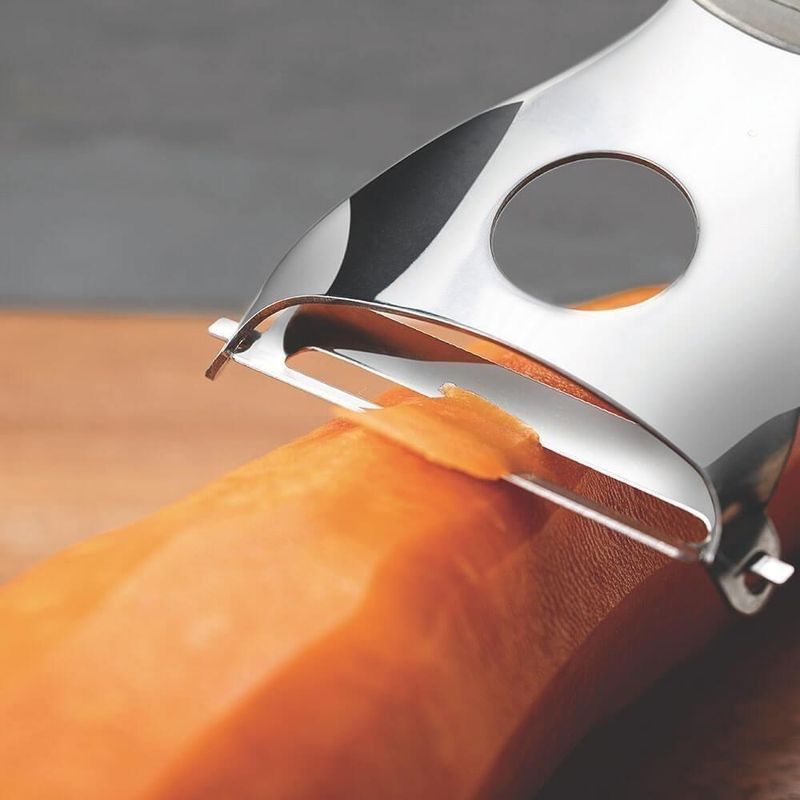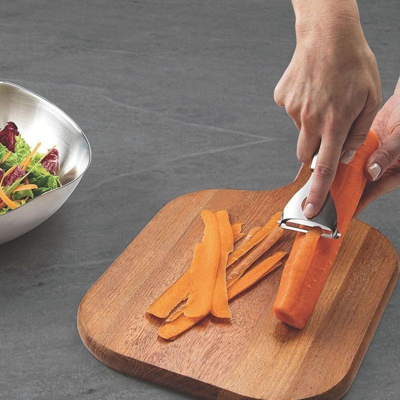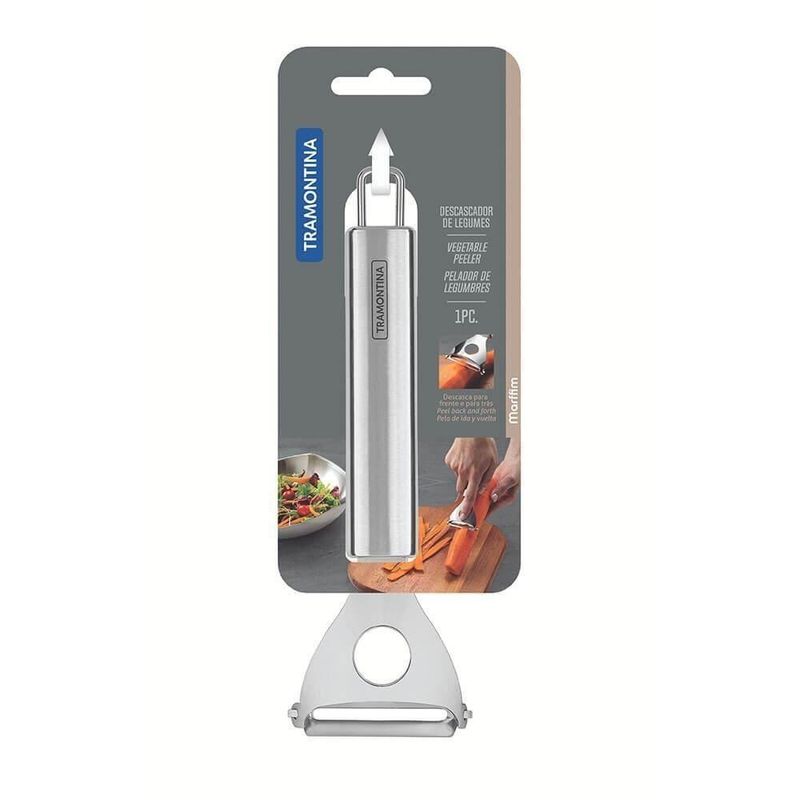 Descascador De Legumes Tramontina Marffim Em Aço Inox 63809440DESCASCADOR DE LEGUMES TRAMONTINA MARFFIM EM AÇO INOX 63809440Marca: TramontinaModelo: Marffim em Aço Inox 63809/440DESCRIÇÃO DO DESCASCADOR DE LEGUMES MARFFIM EM AÇO INOX- Ao preparar receitas especiais ou aquele almoço do dia a dia, o Descascador de Legumes Tramontina Marffim em Aço Inox é item indispensável na cozinha!- Isso porque o produto permite que você descasque legumes com muito mais rapidez, segurança e precisão.- O utensílio é produzido totalmente em aço inox, oferecendo assim muito mais resistência e durabilidade ao fio de corte.- A escolha ideal para cozinhar com mais facilidade, é com a Tramontina!INFORMAÇÕES DO DESCASCADOR DE LEGUMES MARFFIM EM AÇO INOX- Totalmente feita de aço inox, por isso não solta nenhum resíduo nos alimentos, mantendo-os saudáveis.- Altamente durável, mantém suas características originais, preservando a beleza, a higiene e a durabilidade do material.- Pode ser lavada diariamente na máquina de lavar louças.ORIENTAÇÕES DO DESCASCADOR DE LEGUMES MARFFIM EM AÇO INOX- Use apenas sabão ou detergente e uma esponja macia.- Outros tipos de produto como palha de aço, poderão riscar ou prejudicar o brilho da peça.- Enxágue cada item a fim de remover totalmente os resíduos dos produtos de limpeza, que, por serem abrasivos, podem danificar o inox.- Sempre que possível, use água quente, pois renova o brilho da peça.- Após a lavagem, enxugue imediatamente a peça, caso contrário, as substâncias químicas da água (cloro) poderão causar manchas.- Evite atrito entre as peças durante o processo de lavagem e no armazenamento, para mantê-la sem riscos.- Evite o contato do produto com superfícies quentes, pois elas provocam a descoloração do material.- Não guarde a peça em locais úmidos.- A umidade também provoca manchas.Peso- 0,068 kgGarantia- 90 dias de garantia legal para vícios ou defeitos de fabricação..Dimensões- Dimensões da embalagem (Compr. X Larg. X Alt.): 18,2 x 5,9 x 1,8 cm Cor: Inox | Material do cabo: Aço inoxidável | Material da lâmina: Aço inoxidável | Comprimento total: 18,2 cm | É kit: Não | É apto para lava-louças: Sim | cor: marfim | Dias Entrega Fornecedor: 0 | Cubagem: 0.001100 | Marca: Tramontina | Peso Líquido: 0.0000 | EmbalagemComprimento-cm: 25 | EmbalagemLargura-cm: 11 | Modelo: Marffim | EmbalagemAltura-cm: 4