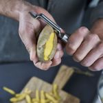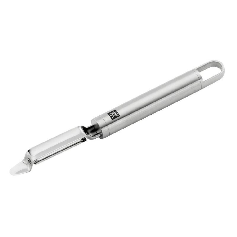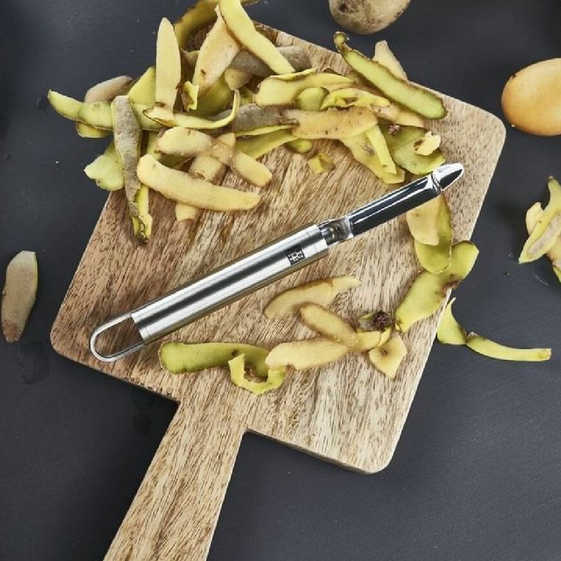 Todos os que preparam tortas de frutas precisam descascar as mesmas. O descascador móvel da série Pro torna isso rápido e sem esforço. É também adequada para legumes, e economiza tempo precioso com suas lâminas duplas de dois gumes. Remover as partes mais irritantes se torna simples com a lâmina posicionada na ponta do descascador. O cabo ergonômico torna o uso incrivelmente agradável, e o laço integrado permite que o descascador seja pendurado na cozinha. Este utensílio de aço inoxidável premium complementa qualquer ambiente com seu design minimalista. - Especificações: • Comprimento: 20cm• Largura: 2cm• Altura: 3cm
