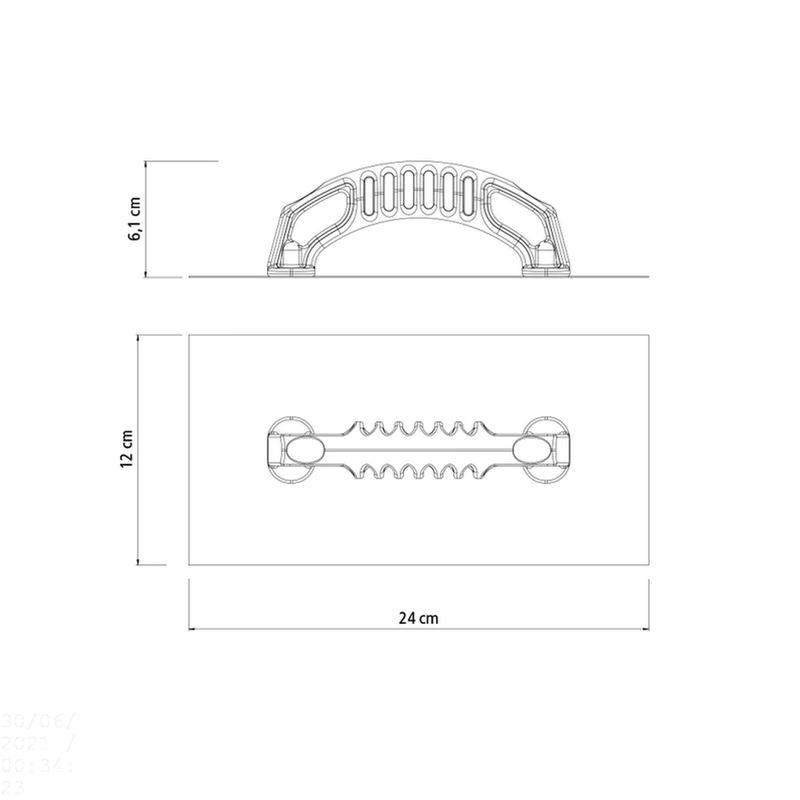Desempenadeira Lisa Tramontina Aço Acabamento Zincado Cabo Tramontina - A desempenadeira lisa Tramontina em aço com acabamento zincado e cabo de polipropileno é a melhor ajudante para seus projetos na construção ou realizar reformas. Produzida em aço carbono especial, ela garante alta qualidade e resistência. Possui superfície polida e acabamento zincado. Além disso, apresenta cabo produzido em polipropileno com ranhuras e formato ergonômico, proporcionando mais conforto durante o uso. Orientações - Fabricada em aço carbono especial de alta qualidade.- Possui superfície polida e acabamento zincado.- Cabo produzido em polipropileno de alta resistência.- O cabo possui ranhuras e tem formato ergonômico, assegurando mais conforto durante o uso. Características Gerais EAN13 7891117092667 DUN14 17891117092664 NCM 8205.59.00 0,1680 kg. 0,1880 kg. Metragem 0,001200 m³. 240x 120x 60 mm. 240x 120x 61 mm. Cor 1 A9A9A9 Hexa Observações - A desempenadeira é utilizada na construção civil para aplicar, nivelar e espalhar uniformemente a argamassa para revestimentos.- Para descarte dos produtos e embalagens siga as orientações de reciclagem vigentes. Características Gerais do Produto: Garantia: • 1 Ano