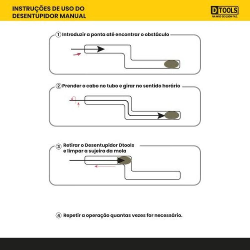 Desentupidor Manual 5 Metros - DTOOLS para Limpeza de Tubulações - DESENTUPIDOR MANUAL 5M - DTOOLSEstá cansado de lidar com entupimentos em sua casa de forma complicada e dispendiosa? O Desentupidor Manual 5M - DTOOLS é a solução perfeita para resolver esse problema de forma rápida, eficiente e econômica. Com um comprimento de 5 metros, este desentupidor é extremamente prático e fácil de usar, garantindo que você consiga desobstruir canos e tubulações sem a necessidade de chamar um profissional.Seja na pia da cozinha, no ralo do banheiro ou em qualquer outro lugar da casa, o Desentupidor Manual 5M - DTOOLS é a ferramenta ideal para manter suas tubulações limpas e funcionando corretamente. Fabricado com materiais de alta qualidade e importado, você pode confiar na durabilidade e eficácia deste produto para resolver seus problemas de entupimento de forma rápida e eficiente.- Comprimento de 5 metros- Prático e fácil de usar- Produto importado de alta qualidade- Ideal para desentupir pias, ralos e tubulações- Economize tempo e dinheiro resolvendo você mesmo os entupimentosInformações Técnicas:- Comprimento: 5 metros- Prazo de validade: indeterminadoNão perca mais tempo e dinheiro com serviços de desentupimento caros e demorados. Adquira agora mesmo o Desentupidor Manual 5M - DTOOLS Universo do Lar e tenha a solução para seus problemas de entupimento sempre à mão. Sua casa agradece! -------- Descrição Original enviada pelo Fornecedor: DESENTUPIDOR MANUAL 5 METROS - DTOOLSComprimento : 5 MetrosPrazo de validade : indeterminadoPratico, Eficiente e EconômicoProduto importado de alta qualidade Características Gerais do Produto: Garantia: • 3 meses