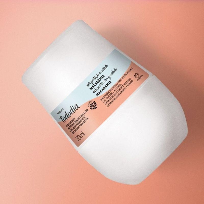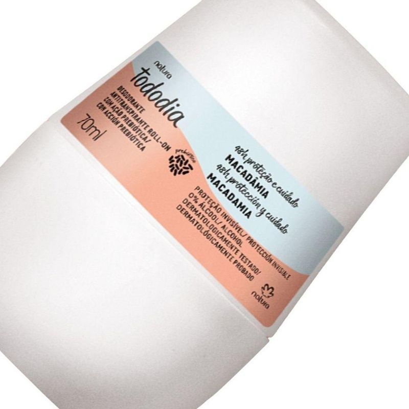 Desodorante Antitranspirante Roll-on Tododia Macadâmia - alta proteção por até 72 horas - cuida da pele com ativos naturais - tecnologia invisível que não mancha roupas claras e escuras - bioinovação: combina o melhor da ciência e da natureza - fragrância cremosa e marcante, com notas florais inspiradas em macadâmia.ÁGUA, PENTACLOROIDRATO DE ZIRCÔNIO ALUMÍNIO, ÉTER DE MACROGOL MONOESTEARÍLICO, GLICEROL, ÓLEO DE CANOLA, ÓLEO DE HÍBRIDO DE HELIANTHUS ANNUUS, ÉTER DE MACROGOL MONOESTEARÍLICO, PERFUME, MIRISTATO DE ISOPROPILA, TREALOSE, CITRATO DE TRIETILA, CAPRILILGLICOL, HIDROXIACETOFENONA, EDETATO DISSÓDICO, ACETATO DE TOCOFERILA.