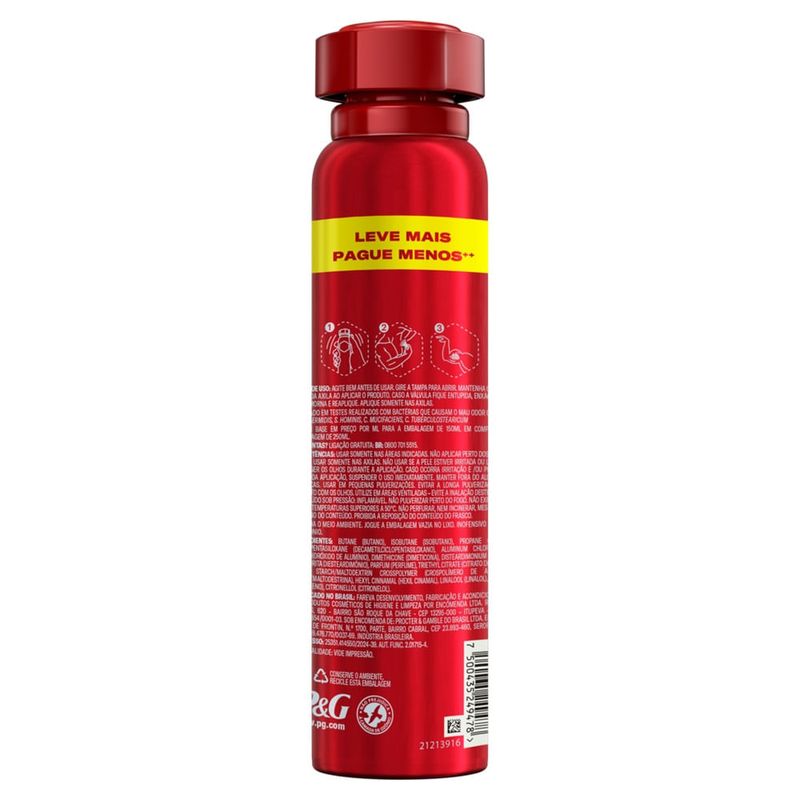 Desodorante Antitranspirante Spray Old Spice Vip 250ml Old Spice Vip é o desodorante antitranspirante ideal para homens sofisticados que valorizam estilo, elegância e proteção duradoura. Com fragrância marcante e moderna, ele oferece proteção contra suor e mau odor por até 72 horas, mantendo você confiante o dia todo. A fórmula exclusiva proporciona frescor prolongado e sensação de limpeza desde a primeira aplicação. O Desodorante Old Spice Vip Spray combina tecnologia avançada antitranspirante com uma fragrância refinada, ideal para ocasiões especiais e o uso diário. Com jato seco e aplicação uniforme, evita manchas nas roupas e seca rapidamente, garantindo praticidade para a sua rotina. A embalagem de 250ml oferece alto rendimento, acompanhando o seu ritmo com eficiência e estilo. Benefícios 72 horas de proteção contra suor e mau odor; Fragrância sofisticada e duradoura; Fórmula de jato seco com secagem rápida; Não deixa manchas nas roupas; Ideal para todos os tipos de pele; Alta performance em embalagem econômica de 250ml. Modo de Uso Agite bem antes de usar; Aplicar nas axilas a uma distância de aproximadamente 15cm; Deixe secar antes de vestir a roupa. Precauções e Advertências Uso externo. Não aplicar sobre a pele lesionada ou irritada; Evite contato com os olhos; Produto inflamável: mantenha longe de fontes de calor e fogo; Mantenha fora do alcance de crianças; Em caso de irritação, suspenda o uso e procure orientação médica.