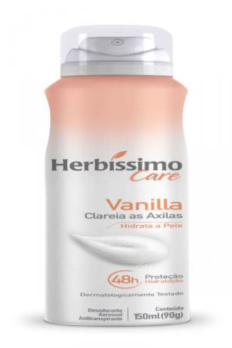 Desodorante Herbíssimo Care Vanila 150mlFórmula desenvolvida com a exclusiva tecnologia clareadora que cuida da pele e mantém as axilas lindas e saudáveis. Clareia as axilas, hidrata a pele, 0% Álcool, Proteção e hidratação 48h, Dermatologicamente Testado.