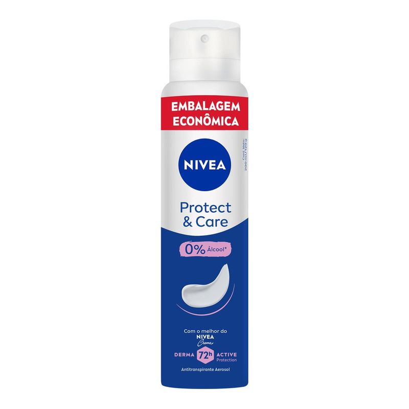 Desodorante Nivea Aero 200ml Protect Care Lv+Pg-Desodorante Nivea Protect & Care possui ingredientes ativos que não agridem a pele e são responsaveis por proteger dos maus orodes causados pela transpiração garantindo até 48h de proteção. Ele não contém álcool, é antitranspirante e promove uma sensação agradavél graças a sua tecnologia Protect and Care.