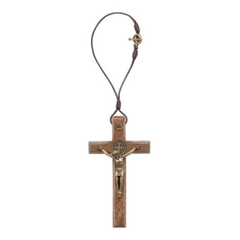 Dezena para Carro Crucifixo em Madeira Natural 9 cm Feito em madeira natural, possui acabamento especial com cantos fresados e tratamento com verniz fosco, o que lhe dá uma aparência rústica e limpa, contrastando com o Cristo crucificado e a placa INRI em metal ouro velho. Tamanho Crucifixo: 9 cmMaterial: madeira, cristo em Metal ouro velho e cordão marromTratamento: verniz foscoCor: marrom natural