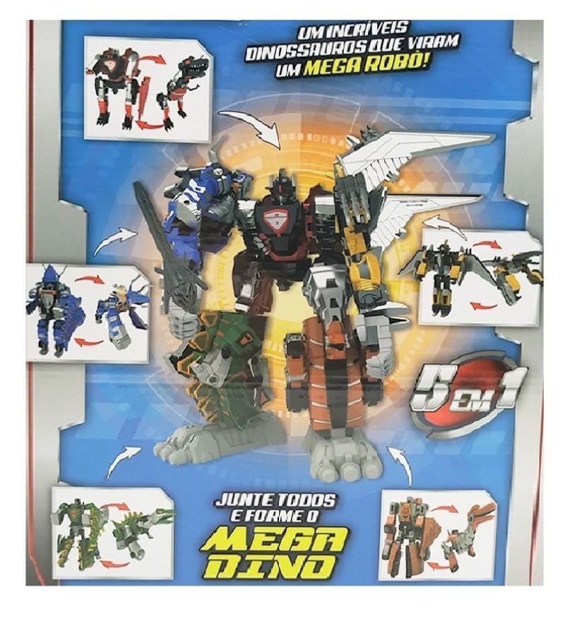 Dino Warrior Power Mega Dino – Dinossauros Viram Robo – Kit 5 Dino junte e forme o Mega Robo - Toyng Incríveis Dinossauros que viram Robô, junte todos e forme o Mega Dino. São 5 modelos diferentes junte todos os robos e forme um mega robô Idade acima de 4 anos Contem 5 embalagens ( com 5 dinossauros e acessórios ) Tamanho da embalagem 25 x 20 x 8,5 cm ( cada embalagem) Fabricante Toyng