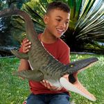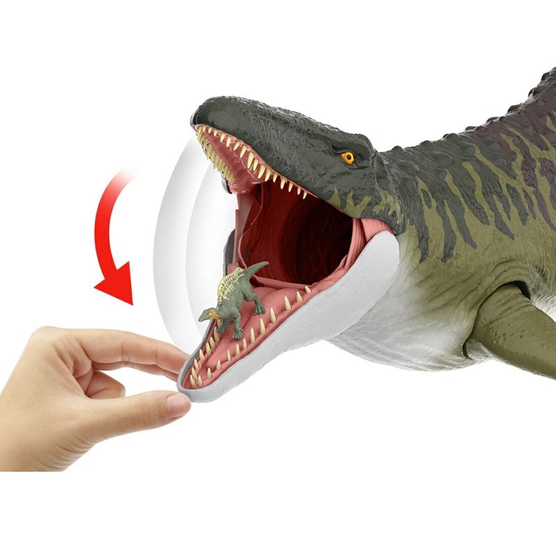 Aviso: Imagens meramente ilustrativas!! Um boneco gigante do Mosassauro do filme Jurassic World Recomeço, feito com diversas articulações nas nadadeiras e corpo para permitir encenar o ataque feroz dessa criatura. Cerca de 91cm de comprimento, o Mosasaurus Colossal Jurassic World Recomeço da Mattel. Pode engolir e armazenar até 20 miniaturas menores de dinossauros (vendidas separadamente). Contém: 1 Dinossauro (Requer Montagem) Idade: 4+ Anos A mandíbula abre 35 graus, pronta para engolir mini figuras de dinossauros (não incluídas, vendidas separadamente) Abra o estômago para liberar a presa e começar tudo de novo Apresenta um design detalhado e articulações articuláveis para diversão de brincar e exibir Comprimento: 91cm REF: JGB51 Marca: Mattel