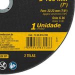 Disco Corte 180,0 X 1,6 X 22,23 Dcvp Us Vonder PlusDisco de Corte Vonder Plus DCVP Us 180,0 x 1,6 x 22,23 - Vonder Plus OficialPara quem busca desempenho superior em cortes industriais, o Disco de Corte Vonder Plus é a escolha certa. Desenvolvido com tecnologia de ponta e seguindo rigorosamente as normas ABNT NBR 15230 e ABNT NBR 16245, este disco oferece cortes rápidos, precisos e com acabamento impecável, mesmo nos materiais mais desafiadores, como aço inox e suas ligas.Sua estrutura reforçada com duas telas de fibra garante máxima resistência durante o uso contínuo em aplicações profissionais. Com grão 36, ele proporciona um excelente equilíbrio entre velocidade de corte e acabamento fino, ideal para quem precisa de agilidade sem abrir mão da qualidade. A espessura de apenas 1,6 mm reduz significativamente a geração de calor e rebarbas, evitando deformações no material e diminuindo o retrabalho. Isso se traduz em produtividade elevada e economia de tempo na linha de produção ou na oficina.O modelo DCVP, tipo 41, possui diâmetro de 180 mm e furo central de 22,23 mm (7/8?), sendo compatível com esmerilhadeiras que operam até 8.500 rotações por minuto. Atenção: este disco não deve ser utilizado em serra mármore. Seu uso é exclusivo para aplicações em metal, onde seu alto desempenho se destaca especialmente em ambientes industriais que exigem constância e segurança nos processos de corte.Especificações- Modelo: DCVP- Diâmetro do disco de corte: 180 mm- Espessura: 1,6 mm (+/-1/16)- Tipo de disco: Tipo 41- Diâmetro do furo (pol/mm): 22,23 mm (7/8)- Grão: 36- Número de telas do disco: 2- Rotação máxima do disco (rpm): 8.500/min- Rotação máxima do disco (rpm): 8.500/min- Segue norma(s) (nome/sigla): ABNT NBR 15230 e ABNT NBR 16245Itens inclusos- 1 Disco de corteGarantia- 03 meses com o fabricante NA