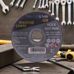 Disco De Corte 115 X 1 Mm Furo 7/8 Mm Metal Pro TradestarDisco de Corte Tradestar Pro 115 x 1 mm Furo 7/8 2 Reforçado mm Aço InoxO Disco de Corte Tradestar Pro 115 x 1 mm Furo 7/8 Aço Inox é um acessório indispensável para quem busca precisão, rapidez e eficiência em trabalhos de corte de metais ferrosos e não ferrosos. Produzido com óxido de alumínio aglomerado com resina, este disco abrasivo garante cortes limpos e seguros, mesmo em materiais de alta resistência, como o aço inoxidável. Seu formato ultrafino proporciona maior precisão e reduz o esforço do operador, favorecendo cortes mais rápidos e com menor geração de rebarbas, o que reduz a necessidade de retrabalho.Outro diferencial importante do Disco de Corte Tradestar Pro é a sua estrutura reforçada com 2 telas de fibra de vidro, que aumentam a resistência do disco durante o uso e proporcionam maior segurança ao operador. Essa característica é essencial em cortes de alta velocidade, evitando que o disco se rompa facilmente sob pressão. Graças à sua composição abrasiva de alta qualidade, o Disco de Corte Tradestar Pro 115 x 1 mm garante desempenho consistente, longa vida útil e excelente custo-benefício. É uma solução prática e confiável para profissionais da construção civil, serralherias, metalúrgicas, oficinas mecânicas e até mesmo para uso em pequenos reparos e manutenções. Além disso, sua espessura de apenas 1 mm permite cortes mais finos, rápidos e com menor aquecimento da peça, preservando as características do material trabalhado. Dessa forma, o disco contribui para um acabamento mais limpo, reduzindo a necessidade de processos de lixamento e polimento após o corte.Especificações- Diâmetro externo: 115 mm (4.1/2)- Espessura: 1,0 mm- Furo central: 22,23 mm (7/8)- Material: Óxido de alumínio aglomerado com resina- Reforço: 2 telas de fibra de vidro- Aplicações: Corte de metais ferrosos e não ferrosos (inclusive aço inoxidável)- Segmento: Construção Civil / Metalurgia / Manutenção IndustrialItens inclusos- 1 Disco de Corte 115 x 1,0 mm Pro 2 Telas Furo 22,23 mm Aço e InoxGarantia- 03 meses com o Fabricante NA
