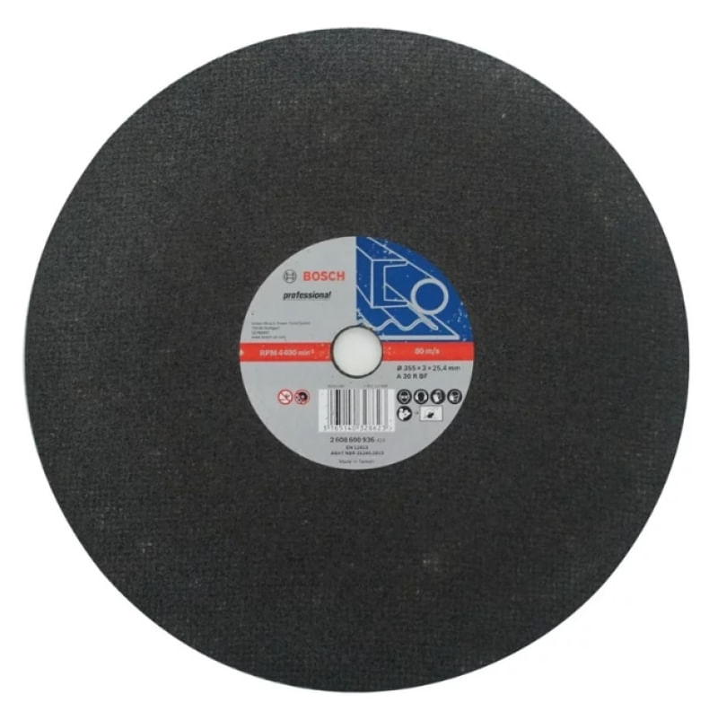 Os discos de corte Expert for Metal efetuam cortes em alta velocidade além de proporcionar um grande rendimento, com cada disco sendo capaz de executar diversos cortes em metal até o fim de sua vida útil. São produzidos com grãos abrasivos de óxido de alumínio de alta qualidade e telas de fibra de vidro feitas com precisão e simetria que trazem alta estabilidade para os discos. São fabricados sob alto padrão de qualidade em conformidade com as normas internacionais (EN 12413) e possuem certificações de qualidade como ABNT (Brasil) e OSA (Europa) trazendo máxima segurança durante sua aplicação. São indicados para corte de metais ferrosos e não ferrosos e ferro fundido e utilização em serras de corte de bancada poolicorte.* Especificações técnicas do fabricante.Discos abrasivos de corte com diâmetros de 254 mm a 405 mm.para utilização universal em cortadoras de metal.Alto rendimento para aplicações pesadas.Tamanho do grão A 30 R BF.Diâmetro externo mm 355.Diâmetro externo polegada 14.Diâmetro interno mm 25.4.Centro reto.SKU: 00742504