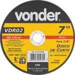 Disco de Corte 180 mm x 3 mm x 22,23 mm Vdr02, Vonder OstenVonder - Conteúdo da embalagem: 1 Disco de corte. Aplicação: Indicado para serralheiros e demais profissionais em geral. Ideal para cortar aços e materiais ferrosos (barras, tubos e chapas), manutenções e reparos leves. Não utilizar em serra mármore. Destaques: Possui excelente performance em trabalhos intermitentes. Referência: 1215718780 Garantia - E (CDC): Garantia legal: 90 dias Espessura: 3,0 mm (+/-1/8") Diâmetro do furo: 22,23 mm (7/8") Grão: G 30 Número de telas do disco: 2 Modelo: VDR 02 Tipo de disco: Tipo 41 Segue norma(s): ABNT NBR 15230 e ABNT NBR 16245 Diâmetro do disco de corte: 180 mm Rotação máxima do disco - rpm: 8.500/min Destaques Comercial: Possui excelente performance em trabalhos intermitentes. Aplicação Comercial: Indicado para serralheiros e profissionais em geral no corte de aços e ferrosos; não usar em serra mármore. Características Gerais do Produto: Garantia: • 3 Meses