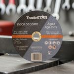 Disco de Corte Tradestar 180 x 1,6 mm Furo 7/8" Aço e InoxO Disco de Corte Tradestar 180 x 1,6 mm Furo 7/8" Aço e Inox é um acessório indispensável para profissionais que exigem cortes rápidos, precisos e com excelente acabamento. Fabricado em óxido de alumínio aglomerado com resina, este disco abrasivo foi desenvolvido para oferecer alto desempenho e maior durabilidade, mesmo em trabalhos intensivos. O Disco Tradestar é ideal para ser utilizado em esmerilhadeiras angulares, proporcionando cortes limpos e ágeis, sem rebarbas excessivas. A sua estrutura reforçada com duas telas de fibra de vidro garante maior resistência mecânica, oferecendo segurança e estabilidade durante o uso em altas rotações.Esse disco é indicado para o corte de aço carbono, aço inoxidável e metais não ferrosos, sendo amplamente utilizado em serralherias, metalúrgicas, oficinas mecânicas, construção civil e manutenção industrial. A espessura reduzida de 1,0 mm permite cortes mais finos, com menor esforço da máquina e menor geração de calor, o que contribui para preservar tanto a peça trabalhada quanto a vida útil do disco.O Disco de Corte Tradestar 180 x 1,6 mm alia eficiência, durabilidade e segurança, oferecendo excelente custo-benefício para profissionais e empresas que buscam qualidade superior em seus trabalhos. É uma solução prática e confiável para quem precisa de cortes rápidos e precisos em aço e inox.Especificações- Diâmetro externo: 180 mm- Espessura: 1,6 mm- Furo central: 22,23 mm (7/8")- Material: Óxido de alumínio aglomerado com resina- Reforço: 2 telas de fibra de vidro- Aplicações: Corte de aço, inox e metais não ferrosos- Segmento: Metalurgia / Construção Civil / Manutenção IndustrialItens inclusos- 1 Disco de Corte 180 x 1,6 mm Furo 22,23 mm Aço e InoxGarantia- 03 meses com o Fabricante