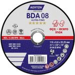 Disco De Corte Com Depressão Central Bda 08 115x0,8x22,23mm - 66252920338 - Norton Disco de Corte com Depressão Central BDA 08 115x0,8x22,23mm - 66252920338 - NORTONDescrição: Disco de corte com depressão 115mm de diâmetro externo, 22.23mm de diâmetro interno e 0.8mm de espessura. Indicado para corte de aços carbonos e aços inoxidáveis em manutenção industrial em geral. Os discos são produzidos com as mais atualizadas tecnologias de produto e processo, possui a marca de segurança ABNT e conta com a certificação ISO 9001:2008. Tem também as certificações ISO 14001 e OHSAS 18001, no que se refere a conformidade com os requisitos ambientais, saúde e segurança do trabalho, respectivamente. Características: - Cortes rápidos e ótima relação custo benefício - Diâmetro do disco: 115mm - Espessura: 0.8mm - Diâmetro do furo: 22.23mm - Diâmetro do disco: 4.1/2 - Espessura: 1/32 - Diâmetro do furo: 7/8 - Máquina para utilização: Esmerilhadeira - Superfície para aplicação: Chapas, materiais ferrosos em geral e aço inoxidável - RPM: 13300 - Operação: Corte * Imagens meramente ilustrativasmeli_shipping_mode - me1