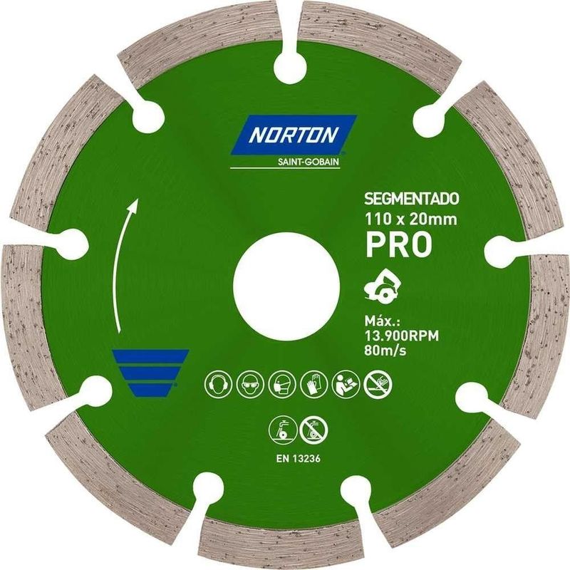 Disco De Corte Diamantado Linha Pró 110 Mm Segmentado Norton OstenvonderDisco de Corte Diamantado Linha PRÓ 110 mm Segmentado Norton OstenVonder -Conteúdo da embalagem: 1 Disco de corte diamantado.Aplicação: Utilizado em serra mármore no corte de concreto, alvenaria, tijolos e telhas. Os discos de corte a seco, quando refrigerados, proporcionam um melhor rendimento.Destaques: Possui maior camada de diamante, proporcionando corte mais rápido e fácil.Referência: 70184624361Garantia - E (CDC): Garantia legal: 90 diasModelo: PROPerfil do corte: SegmentadoTipo de corte do disco de corte diamantado: A secoDiâmetro externo do disco de corte diamantado: 110 mmDiâmetro do furo do disco de corte diamantado: 20 mmAltura do segmento diamantado: 7,5 mmEspessura do segmento diamantado: 1,9 mmMassa aproximada (peso): 0.112 kgSegue norma: EN 13236Rotação máxima - rpm: 13.900/minDestaques Comercial: Possui maior camada de diamante, proporcionando corte mais rápido e fácil.Aplicação Comercial: Usado em serra mármore para cortar concreto, alvenaria, tijolos e telhas; refrigeração melhora o rendimento.Características Gerais do Produto:Garantia: - 3 Meses