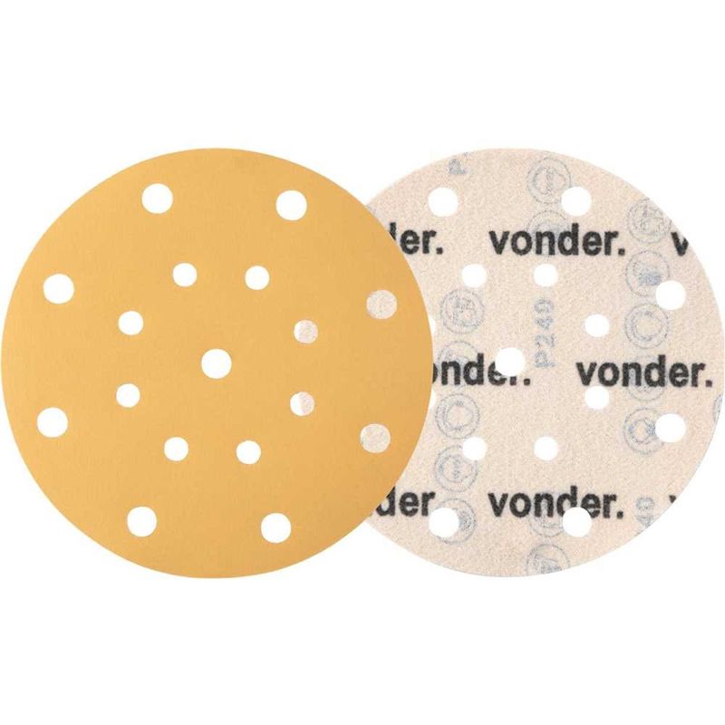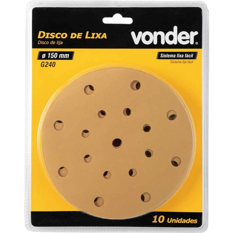Disco de Lixa com Costado em Pluma 6" - 150 mm, Grão 240, Para a Lixadeira LRV 350b, Vonder OstenVonder - Conteúdo da embalagem: 1 Pacote com 10 discos de lixa. Aplicação: Ideal para lixamento de massa corrida. Indicado para a Lixadeira Roto-Orbital 6" LRV 350B VONDER PLUS e outras compatÃveis com o diâmetro e furos da lixa. Destaques: Possui sistema fixa fácil e 17 furos. Referência: 1258350240 Garantia - E (CDC): Garantia legal: 90 dias + Garantia contratual: 15 meses Diâmetro do disco de lixa: 6" - 150 mm Grão: G 240 Nº de furos: 17 Massa aproximada (peso): 0,12 kg Tipo de grão abrasivo: Ãxido de alumÃnio Destaques Comercial: Possui sistema fixa fácil e 17 furos. Aplicação Comercial: Ideal para lixamento de massa corrida. CompatÃvel com lixadeiras roto-orbitais 6" com mesmo padrão de furos. Características Gerais do Produto: Garantia: • 3 Meses