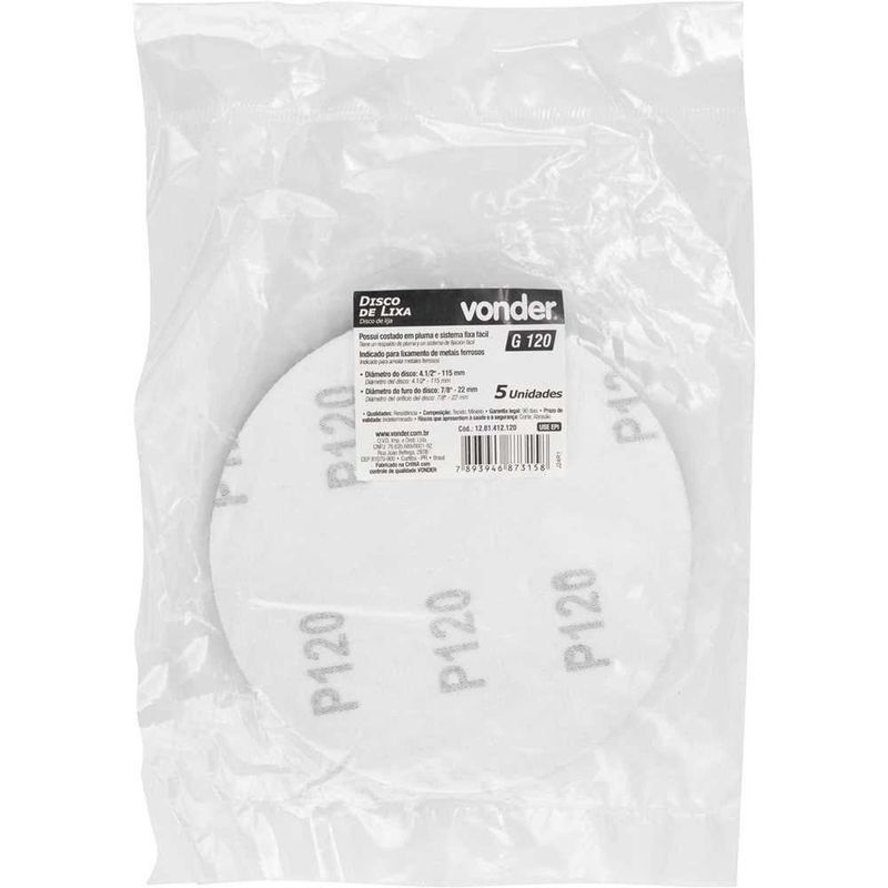 Disco De Lixa Costado Em Pluma, 4.1/2, Grão 120, Vonder OstenvonderDisco de Lixa Costado em Pluma, 4.1/2, Grão 120, Vonder OstenVonder -Conteúdo da embalagem: 5 discos de lixa.Aplicação: Indicado para lixamento de metais ferrosos. Utilizado em máquinas angulares rotativas de acionamento elétrico ou pneumático. Aplicações em estruturas metálicas, indústria naval, fundições de metais ferrosos e indústria automobilística.Destaques: Possui costado em pluma e sistema fixa fácil.Garantia - E (CDC): Garantia legal: 90 diasReferência: 1281412120Massa aproximada (peso): 0,027 kgGrão: G 120Tipo de grão abrasivo: Óxido de alumínioDestaques Comercial: Possui costado em pluma e sistema fixa fácil.Aplicação Comercial: Indicado para lixamento de metais ferrosos em máquinas angulares rotativas elétricas ou pneumáticas, usado em estruturas metálicas, indústria naval, fundições e setor automobilístico.Diâmetro do disco de lixa: 4.1/2 (115 mm)Características Gerais do Produto:Garantia: - 3 Meses