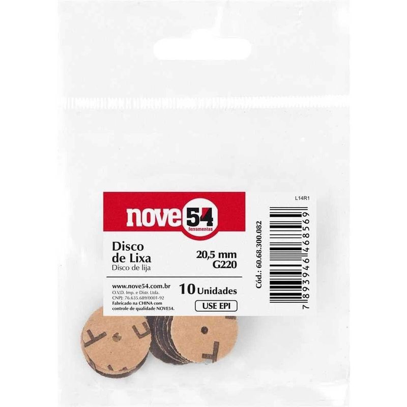 Disco De Lixa Para Microrretífica, 20,5 Mm, G 220, Nove54Disco de Lixa Para Microrretífica, 20,5 mm, G 220, Nove54 -Conteúdo da embalagem: 1 Pacote com 10 discos de lixa.Aplicação: Indicado para realizar acabamento e desbaste com microrretífica.Destaques: Lixa G 220.Garantia - E (CDC): Garantia legal: 90 diasReferência: 6068300082Tipo de costado: Base papelDiâmetro do disco: 20,5 mmDiâmetro do furo do disco: 2,00 mmGrão: G 220Tipo de grão abrasivo: Óxido de alumínioDestaques Comercial: Lixa G 220.Aplicação Comercial: Indicado para realizar acabamento e desbaste com microrretífica.Características Gerais do Produto:Garantia: - 3 Meses
