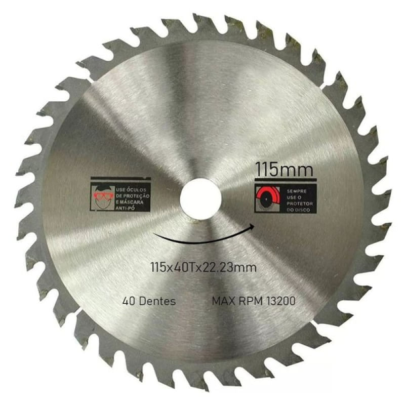 Disco De Serra Circular Com 40 Dentes 4-1/2" 115mm Para Madeira - O Disco de serra circular é ideal para cortar madeira. Especificações Técnicas Diâmetro externo: 115mm Dentes: 40 dentes de Carbono. Max RPM: 13200 Conteúdo da Embalagem: 01 Disco de serra circular 40 Dentes. Características Gerais do Produto: • Material: Metal • Modelo: Para Madeira 115mm Garantia: • Garantia do site - 1 Mês • Garantia de fábrica - 6 Meses