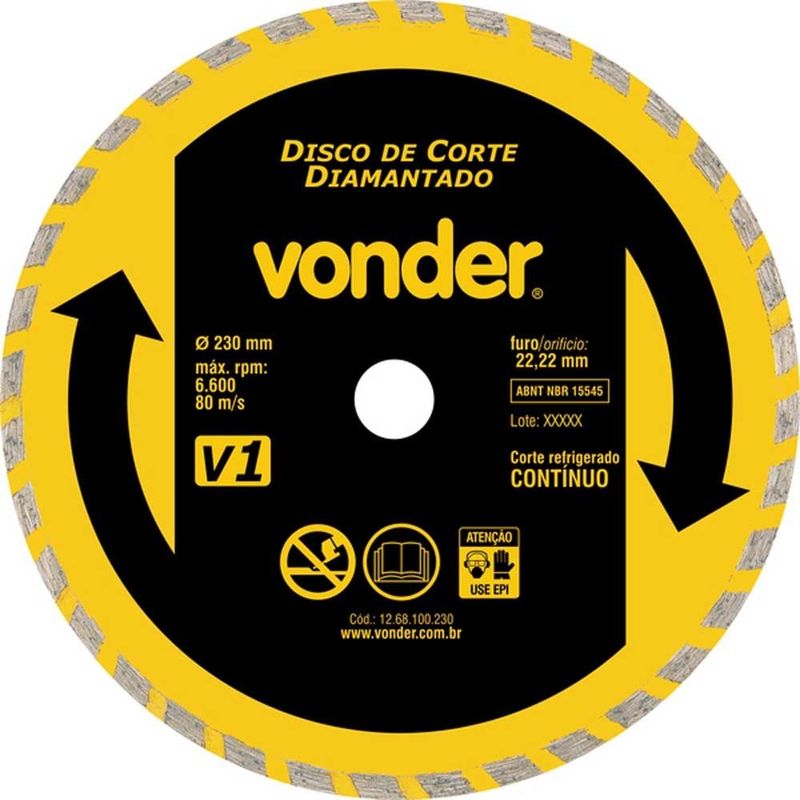 - Indicado para cortar mármore, granito, concreto, tijolo, telhas, alvenaria e pedras. Os discos de corte a seco, quando refrigerados proporcionam um melhor rendimento. Proporciona maior produtividade e profundidade de corte. Acompanha bucha de redução de 22,2 mm para 20 mm Diâmetro externo do disco de corte diamantado:230 mm Diâmetro do furo do disco de corte diamantado:22,2 mm Tipo de corte do disco de corte diamantado:Refrigerado Perfil do corte:Anel contínuo Rotação máxima (rpm):6600 rpm Segue norma:ABNT NBR 15545SKU: 11051640