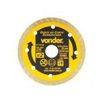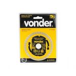 Disco Diamantado Vonder 110mm V2 Furo 20Descricao Disco de corte diamantado, 110 mm, furo de 20 mm, turbo, V2, VONDER12.68.200.000Maior velocidade de corte, aumentando o rendimento no trabalho. Acompanha bucha de reducao de 20 mm para 16 mm.Indicado para cortar marmore, granito, concreto, tijolo, telhas, alvenaria e pedras. Os discos de corte a seco, quando refrigerados proporcionam um melhor rendimento.*Imagens meramente ilustrativas.Especificacao Tecnica Informacoes do ProdutoDisco de corte diamantado, 110 mm, furo de 20 mm, turbo, V2, VONDER - 12.68.200.000Aplicacao Indicado para cortar marmore, granito, concreto, tijolo, telhas, alvenaria e pedras. Os discos de corte a seco, quando refrigerados proporcionam um melhor rendimento.Maior velocidade de corte, aumentando o rendimento no trabalho. Acompanha bucha de reducao de 20 mm para 16 mm.Informacoes TecnicasDiametro externo do disco de corte diamantado 110 mmDiametro do furo do disco de corte diamantado 20 mmTipo de corte do disco de corte diamantado A SecoPerfil do corte TurboAltura do segmento diamantado 7 mmEspessura do segmento diamantado 2,0 mmRotacao maxima (rpm) 14000 /minGarantia - E (CDC): Garantia legal: 90 diasConteudo da Embalagem- 1 Disco de corte diamantado.Modelo:Turbo V2Perfil do corte:TurboTipo de corte do disco de corte diamantado:A secoDiametro externo do disco de corte diamantado:110 mmDiametro do furo do disco de corte diamantado:20 mmAltura do segmento diamantado:7,0 mmEspessura do segmento diamantado:2,0 mmRotacao maxima:14.000/minSegue norma:ABNT NBR 15545Massa aproximada (peso):0,115 kgDescricao Disco de corte diamantado, 110 mm, furo de 20 mm, turbo, V2, VONDER12.68.200.000Maior velocidade de corte, aumentando o rendimento no trabalho. Acompanha bucha de reducao de 20 mm para 16 mm.Indicado para cortar marmore, granito, concreto, tijolo, telhas, alvenaria e pedras. Os discos de corte a seco, quando refrigerados proporcionam um melhor rendimento.*Imagens meramente ilustrativas.Especificacao Tecnica Informacoes do ProdutoDisco de corte diamantado, 110 mm, furo de 20 mm, turbo, V2, VONDER - 12.68.200.000Aplicacao Indicado para cortar marmore, granito, concreto, tijolo, telhas, alvenaria e pedras. Os discos de corte a seco, quando refrigerados proporcionam um melhor rendimento.Maior velocidade de corte, aumentando o rendimento no trabalho. Acompanha bucha de reducao de 20 mm para 16 mm.Informacoes TecnicasDiametro externo do disco de corte diamantado 110 mmDiametro do furo do disco de corte diamantado 20 mmTipo de corte do disco de corte diamantado A SecoPerfil do corte TurboAltura do segmento diamantado 7 mmEspessura do segmento diamantado 2,0 mmRotacao maxima (rpm) 14000 /minGarantia - E (CDC): Garantia legal: 90 diasConteudo da Embalagem- 1 Disco de corte diamantado.Modelo:Turbo V2Perfil do corte:TurboTipo de corte do disco de corte diamantado:A secoDiametro externo do disco de corte diamantado:110 mmDiametro do furo do disco de corte diamantado:20 mmAltura do segmento diamantado:7,0 mmEspessura do segmento diamantado:2,0 mmRotacao maxima:14.000/minSegue norma:ABNT NBR 15545Massa aproximada (peso):0,115 kg