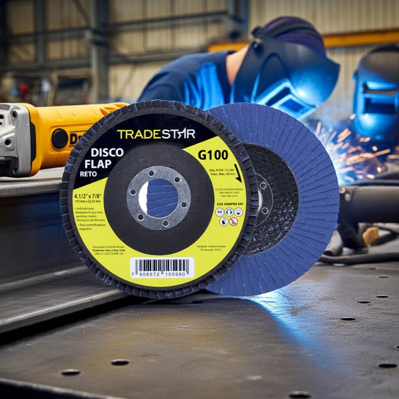 Disco de Desbaste Reto Tradestar G100 Azul Aço e InoxO Disco de Desbaste Reto Tradestar G100 Azul é a escolha ideal para profissionais e entusiastas do faça-você-mesmo que buscam desempenho, precisão e durabilidade em trabalhos com metais ferrosos e não ferrosos. Fabricado com abrasivo de óxido de alumínio G100e suporte em fibra de vidro, este disco proporciona um acabamento uniforme, eficiente e seguro em superfícies metálicas. Seu design de grão médio permite remover rebarbas, preparar superfícies para soldagem, acabamento e polimento inicial, garantindo resultados consistentes sem danificar o material. A tonalidade azul do abrasivo indica resistência extra e durabilidade superior, tornando o disco adequado para uso contínuo e em condições exigentes.O disco é compatível com lixadeiras angulares padrão, sendo fácil de montar e operar, oferecendo estabilidade e controle durante o trabalho. Sua construção robusta também proporciona maior segurança, reduzindo vibrações e riscos de quebra durante o desbaste de metais mais resistentes, como aço inox.Ideal para oficinas, indústrias, serralherias, manutenção e projetos de construção, o disco de desbaste Tradestar combina praticidade, resistência e versatilidade. Além disso, seu design flap garante um acabamento mais uniforme em comparação aos discos planos convencionais, facilitando o lixamento em superfícies irregulares e curvas.Especificações- Abrasivo: Óxido de alumínio em G100- Suporte: Fibra de vidro- Diâmetro: 115 mm- Indicação de uso: Desbaste e acabamento de metais ferrosos e não ferrosos- Cor do abrasivo: Azul- Compatibilidade: Lixadeiras angulares padrãoItens inclusos- 01 Disco Acabamento Tradestar 115 mm G100 Reto Azul Aço e InoxGarantia- 03 meses com o Fabricante