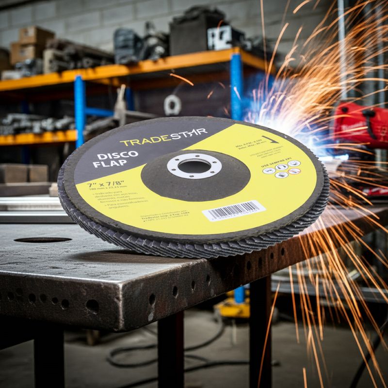 Disco de Desbaste 180 mm G40 Fibra Conico Azul Aço e Inox TradestarO Disco de Desbaste Cônico Tradestar 180 mm G40 Azul é a escolha perfeita para quem busca eficiência, durabilidade e resultados de alta qualidade em trabalhos com metais. Projetado para atender tanto profissionais do setor industrial quanto usuários que realizam projetos domésticos ou de manutenção, este disco flap é indispensável em oficinas mecânicas, serralherias, indústrias metalúrgicas e serviços de reparo em geral.Produzido com abrasivo de óxido de alumínio, o disco oferece um desbaste mais agressivo, ideal para a remoção de material em maior volume, preparação de superfícies e eliminação de imperfeições. A versão cônica é especialmente recomendada para alcançar áreas de difícil acesso, proporcionando um acabamento uniforme mesmo em superfícies curvas, cantos ou locais estreitos.Graças ao seu design flap, o Disco Tradestar proporciona um lixamento contínuo e uniforme, reduzindo marcas e arranhões na superfície. Isso se traduz em menos retrabalho e em um acabamento mais preciso, seja em trabalhos de preparação para soldagem, remoção de rebarbas, limpeza de cordões de solda ou nivelamento de peças metálicas. Seja para uso profissional em ambientes industriais ou para projetos DIY que demandam precisão, o Disco de Desbaste 180 mm G40 Fibra Cônico Azul Tradestar é a solução confiável para garantir produtividade e resultados superiores em cada aplicação.Especificações- Abrasivo: Óxido de alumínio- Grão: G40- Dimensões: 180 mm- Diâmetro do furo: 22,23 mm- Rotação máxima: 8.500 RPM- Velocidade máxima: 80 m/s- Suporte: Fibra de vidro de alta resistência- Indicação de uso: Desbaste e acabamento de aço carbono e aço inoxidávelItens inclusos- 1 Flap Disc 180 mm G40 Fibra Conico Azul Aço E InoxGarantia- 03 meses com o Fabricante