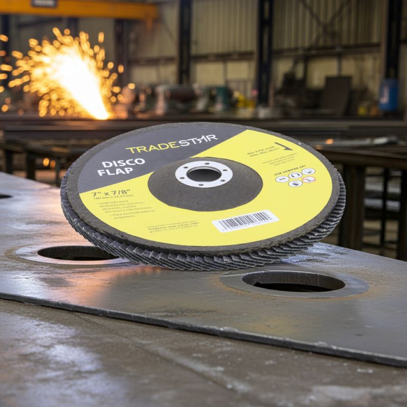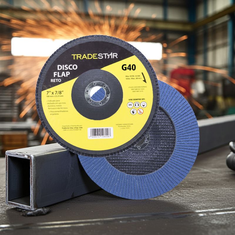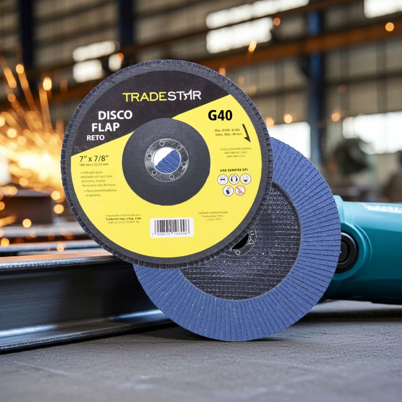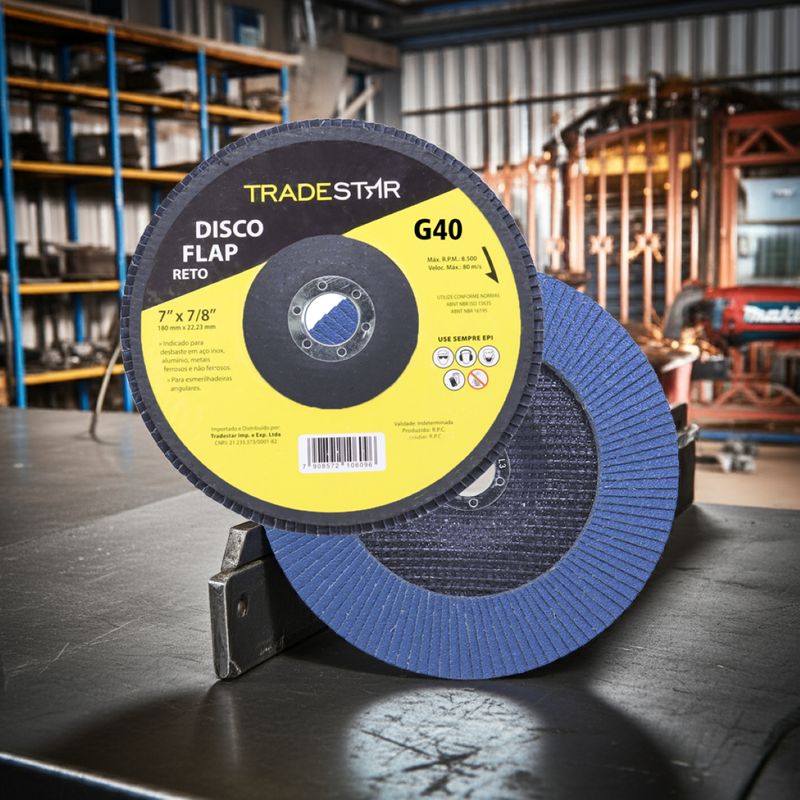 Disco de Desbaste Tradestar 180 mm G40 Fibra Reto Azul Aço e InoxO Disco de Desbaste Tradestar 180 mm G40 Fibra Reto Azul é a escolha ideal para quem busca eficiência, durabilidade e resultados profissionais em trabalhos de desbaste e acabamento em metais. Projetado especialmente para aplicações em aço e inox, este disco flap une qualidade e desempenho, atendendo tanto às necessidades de profissionais do setor industrial quanto de entusiastas do faça-você-mesmo.Sua construção em abrasivo de óxido de alumínio de alta performance garante corte e desbaste precisos, removendo material com rapidez e deixando um acabamento uniforme. O formato reto é ideal para superfícies planas, proporcionando maior estabilidade e controle durante a operação, o que se traduz em trabalhos mais seguros e acabamentos consistentes.O diâmetro de 180 mm (7”) e o furo central de 22,23 mm garantem compatibilidade com a maioria das lixadeiras angulares disponíveis no mercado. Além disso, o suporte de fibra de vidro de alta resistência confere robustez, durabilidade e maior segurança durante o uso, reduzindo riscos de quebra e prolongando a vida útil da ferramenta.Outro destaque é sua capacidade de operação em rotações de até 8.500 RPM, suportando velocidades de até 80 m/s sem comprometer o desempenho ou a segurança do operador. Essa característica faz do Disco Tradestar uma ferramenta confiável tanto para operações intensas quanto para trabalhos mais delicaSeja no ambiente profissional ou em projetos pessoais, o Disco Flap Tradestar 180 mm G40 Fibra Reto Azul Aço e Inox é sinônimo de eficiência e acabamento de qualidade, representando uma excelente relação custo-benefício para quem busca ferramentas abrasivas confiáveis.Especificações- Abrasivo: Óxido de alumínio- Grão: G40- Dimensões: 180 mm- Diâmetro do furo: 22,23 mm- Rotação máxima: 8.500 RPM- Velocidade máxima: 80 m/s- Suporte: Fibra de vidro de alta resistência- Indicação de uso: Desbaste e acabamento de Azul Aço e Inox carbono, Azul Aço e Inox inox, alumínio, metais ferrosos e não ferrososItens inclusos- 1 Flap Disc 180 mm G40 Fibra Fibra Reto Azul Aço e InoxGarantia- 03 meses com o Fabricante