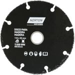 Disco Para Corte De Madeira 110x20mm - 69957315170 - Norton Disco para Corte de Madeira 110x20mm - 69957315170 - NORTONDescrição: Ideal para corte de madeira, mesmo que contenha resíduos de concreto, grampos ou pequenos pregos (3mm) sem risco de trancos. Características: - Alta resistência contra intempéries - Diâmetro do disco: 110mm - Espessura: 1.0mm - Diâmetro do furo: 20.00mm - Diâmetro do disco: 4.5 - Espessura: 3/64 - Diâmetro do furo: 4/5 - Máquina para utilização: Serra mármore - Superfície para aplicação: Madeira - RPM: 13800 - Operação: Corte * Imagens meramente ilustrativasmeli_shipping_mode - me1