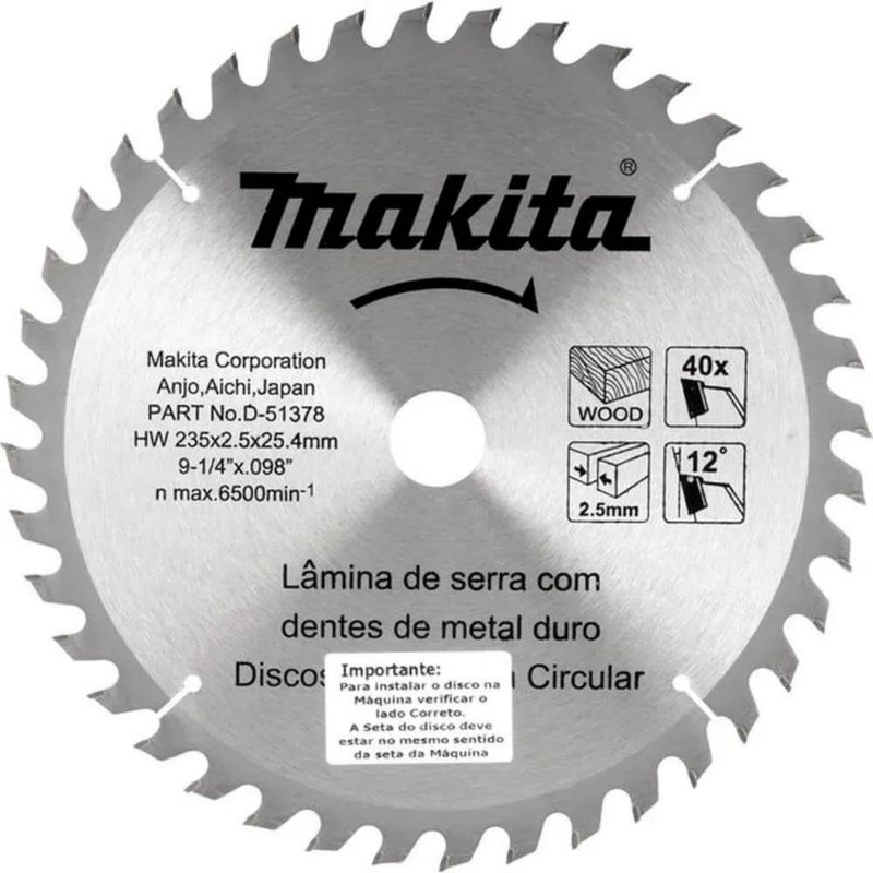 Disco Serra Makita 80 Dentes 12" x 1" Corte em Alumínio D-03486O Disco Serra Makita 80 Dentes 305 mm x 25,4 mm D-03486 foi desenvolvido para entregar cortes de altíssima precisão em perfis, chapas e peças de alumínio. Projetado com a reconhecida qualidade da Makita — referência mundial em ferramentas profissionais — este disco é a solução ideal para quem busca eficiência, acabamento superior e durabilidade no corte de metais não ferrosos.Com 80 dentes no formato TCG (Triple Chip Grind), o disco proporciona cortes extremamente limpos e com acabamento refinado, evitando rebarbas e imperfeições. Sua configuração foi pensada para reduzir o esforço do equipamento e otimizar o rendimento da serra, garantindo produtividade elevada, cortes rápidos e menor desgaste da lâmina.O grande diferencial deste Disco Makita D-03486 está no equilíbrio perfeito entre robustez e precisão. Seu diâmetro de 305 mm (12") e furo central de 25,4 mm permitem o encaixe em diversos modelos de serras de bancada, serras de meia-esquadria e serras de corte para metais.A espessura otimizada do dente (3 mm) aliada ao corpo do disco com 2,2 mm garante maior estabilidade durante o corte e reduz vibrações, contribuindo para resultados impecáveis em perfis de alumínio, portas, esquadrias, janelas e estruturas metálicas leves.O ângulo de 5° dos dentes proporciona um corte suave e eficiente, ideal para trabalhos que exigem acabamento perfeito e alta produtividade, seja em marcenarias especializadas, serralherias ou indústrias que trabalham com alumínio.Especificações- Diâmetro: 305mm- Furo: 25.4mm- Espessura do dente: 3mm- Espessura do disco: 2.2mm- Número de dentes: 80- Ângulo do dente: 5- Tipo do dente: TCG- Aplicação: AlumínioItens inclusos- Disco Serra Makita D-03486Garantia- 03 meses com o Fabricante