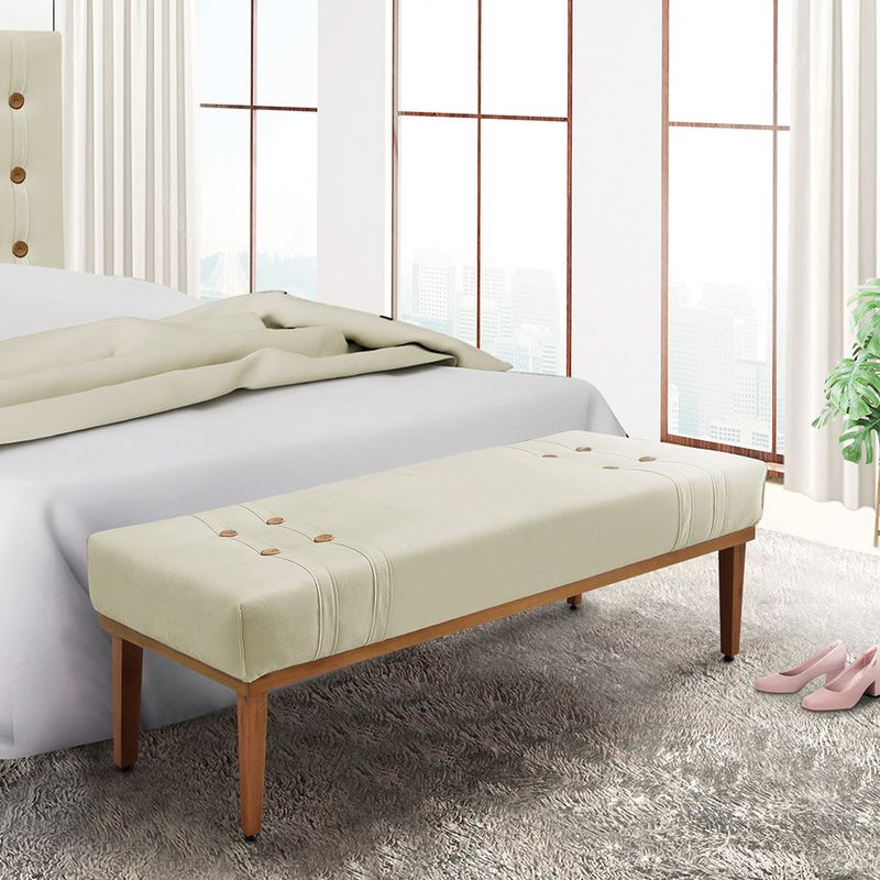 O Divã Recamier Banco Gênova de 160cm é uma peça de mobiliário elegante e funcional, projetada para adicionar um toque de sofisticação e conforto ao seu ambiente. Sua estrutura é construída com madeira de eucalipto reflorestada, garantindo durabilidade e sustentabilidade ambiental. Os pés e a base são feitos de madeira maciça, proporcionando estabilidade e robustez à peça. A densidade da espuma, classificada como D23, assegura um suporte confortável para o usuário, ideal para momentos de relaxamento e descanso. O tecido em Veludo em tom Bege confere um acabamento suave e luxuoso, adicionando um toque de requinte ao design. Os diferenciais incluem botões em madeira cerejeira, que acrescentam um charme adicional, e costura bordada, detalhes que evidenciam a atenção aos acabamentos e o cuidado com os detalhes. Com uma capacidade de suportar até 120 kg, o Divã Recamier Banco oferece conforto e segurança para diferentes usuários. Quanto ao uso, o Divã Recamier Banco pode ser utilizado em diversos ambientes, desde o quarto como um elegante banco no pé da cama, até a sala de estar como um sofá auxiliar ou até mesmo em espaços comerciais, como recepções ou salas de espera, adicionando conforto e estilo onde quer que esteja. Seja como um elemento decorativo ou como um lugar para relaxar, este móvel é uma escolha versátil e elegante para qualquer ambiente. Dimensões do Produto: Altura total: 45 cm Largura total: 160 cm Profundidade total: 50 cm Peso: 14 kg Altura dos Pés: 25 cm Especificações do Produto: Estrutura: Madeira Eucalipto Reflorestada Tipo de pés: Base em Madeira Maciça Densidade da Espuma: D23 Tecido: Veludo Diferenciais: Botões em Madeira Cerejeira e Costura Bordada Peso suportado: Até 120 Kg Garantia: 90 dias contra defeito de fabricação Montagem: O produto é enviado montado, sendo necessário apenas fixar os pés Instruções de limpeza: Utilizar um pano limpo e levemente úmido Você irá receber: 01 Divã Recamier Banco Entregue em: 01 Volume