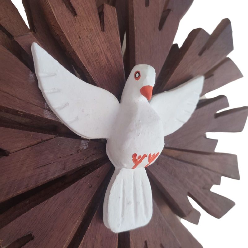 Cuidadosamente esculpido à mão em madeira maciça, este símbolo de fé e proteção irradia beleza e serenidade em qualquer ambiente. Com suas dimensões de 32 x 32cm, é perfeito para adornar paredes, adicionando um toque de espiritualidade e elegância à sua casa ou espaço de trabalho. Seja para presentear alguém especial ou para enriquecer sua própria coleção de arte sacra, este Resplendor é uma peça única e significativa que encantará os corações e eleva os espíritos.