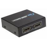 Splitter 1x2 1 Entrada 2 Saídas Hdmi 1080p 3d Distribuidor Duplicador de SinalCom o divisor HDMI 1x2 é possível ligar um equipamento como: PC, Bluray, TV à cabo etc duplicar a mesma imagem para dois dispositivos de saída de informação como televisores ou projetores. Compatível com qualquer equipamento HDMI por ter resolução de 1080p Full HD. Com o certificado HDCP, é possível ligá-lo a diversos equipamentos, inclusive placas de captura. Suporta cascateamento, permitindo ligar outros divisores em conjunto, expandindo a quantidade de saídas HDMI.Especificações: - Suporta imagens 3D;- Resoluções até 1080p incluindo 480i, 576i, 480p, 720p E 1080i;- HDMI categoria 1.4;- Suporte ao padrão HDCP internacional;- Ideal para integração de Home Theater;- 1 Entrada HDMI + 2 Saídas HDMI simultâneas;- Fácil e rápida instalação. Plug And Play;- Conformidade nos requisitos HDMI / HDCP;- Vídeo largura de banda amplificador 2,5 Ghz;- Sinal de entrada de vídeo 0.5 - 1.0 Volts P-P;- Entrada de sinal Ddc 5 Volts P-P (Ttl);- Faixa de Single Link 1920 X 1200 - 1080p;- Formato de vídeo suportado: 640 x 480, 800 x 600, 1024 x 768, 1280 x 1024;- Alimentação 5v DC;Informações Técnicas:- Largura: 6,5 cm;- Altura: 2 cm;- Comprimento: 6 cm;- Cor: Preta;- Voltagem: Bivolt.Conteúdo da Embalagem: - 1 x Spliter HDMI 1 x 2 - Versão 1.4 3D;- 1 x Fonte 5 V DC.