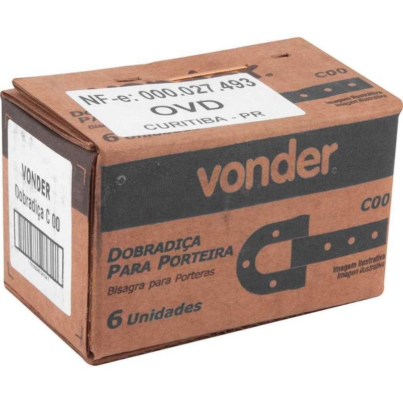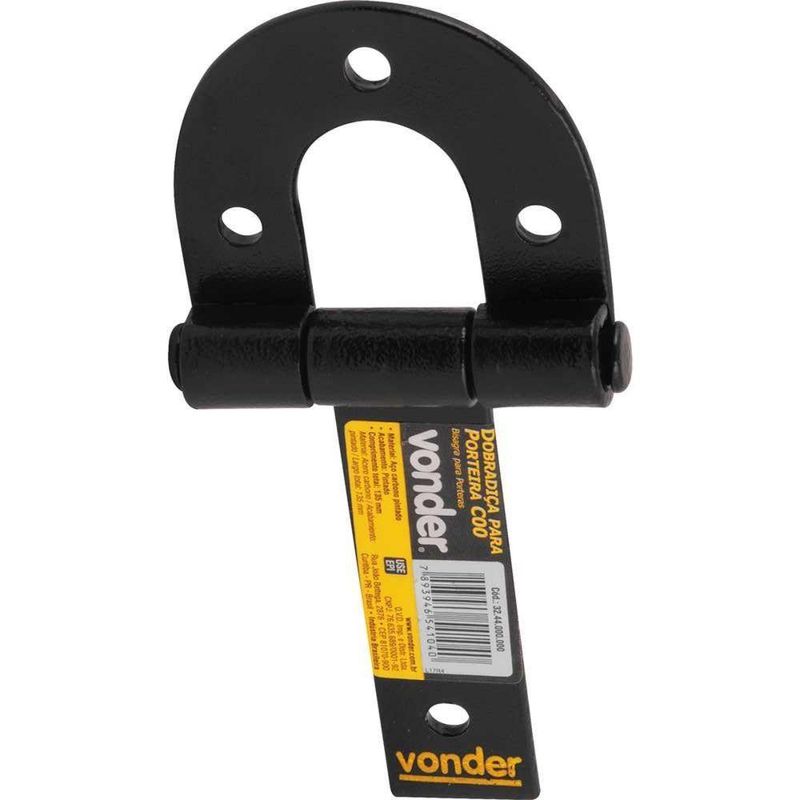 Dobradica Para Porteira C00 - VonderConteúdo da Embalagem:1 Dobradiça para porteiraDescrição:Dobradiça para porteira C00 VONDERAplicações e dicas de uso:Indicada para porteiras, portões, portas, entre outrosDestaques e diferenciais:Prática e fácil de instalar, possui estrutura reforçadaCaracterísticas Técnicas:Material/acabamento da dobradiça : Aço pintado Tamanho/referência da dobradiça para porteira: C - 0 Comprimento total da dobradiça para porteira: 135,0 mmGarantia legal: 90 dias Produto: Dobradica | Marca: Vonder | Peças incluídas: Dobradica | Unidades por kit: 1