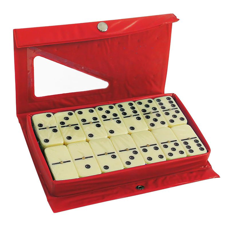 DOMINÓ 52,5X26X11MM 28 PEÇAS - Dimensões da Peça: 5,2 x 2,6 x 1,1cm - Dimensões da Embalagem: 20 x 11,5 x 2,6cm - Quantidade Master: 24 Peças - Dimensões Master: 42 x 26 x 17,9cm - Material: Melamina e PVC - Cor: - Estojo Vermelho - Pedras Marfim - Tipo de Embalagem: Avulso com Etiqueta - Marca: Western - Origem: China - Contém: - 28 peças - 1 Estojo - Este produto não é um brinquedo. - Indicado para maiores de 14 (Quatorze) anos de idade. - Cuidados: - Guarde em local seco, fresco e longe de umidade. - Manter fora do alcance das crianças. - Objetivo do jogo: - Pode-se jogar com 2,3,4 jogadores ou em duplas (2x2). - O objetivo do jogo é colocar todas as suas pedras na mesa antes dos adversários e marcar pontos. O jogo terminará quando um jogador ou dupla alcançar a quantidade de pontos estipulada. - Como jogar: - Cada jogador recebe 7 pedras no início da rodada. Se houver menos de 4 jogadores, as pedras restantes ficam no dorme para serem compradas Garantia do produto: 90 dias de garantia de acordo com o Código de Defesa do Consumidor + a Garantia do Fabricante