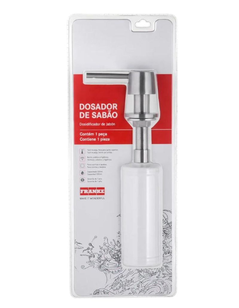 O Dosador de Sabão Redondo Fosco Franke traz sofisticação e praticidade para a sua cozinha. Seu design possui o capacidade de 330ml, abastecimento por cima e acabamento em Aço Escovado. Indicado para uso na cozinha ou lavabo como recipiente para detergente e sabonete líquido, substituindo as saboneteiras convencionais. Um acessório para completar sua cozinha, deixando mais charmosa e moderna. - Especificação: • Capacidade: 330 ml• Garantia: 1 ano• Acabamento: Inox,Branco
