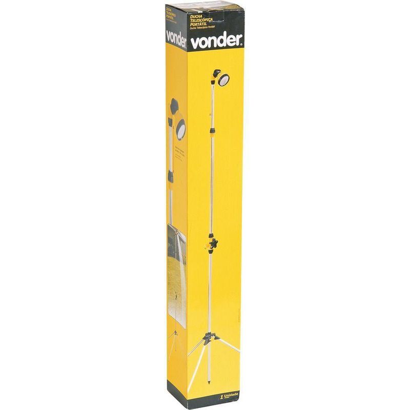 Ducha Telescópica Portátil 1,65-2,20 Metros Com Tripé VonderConteúdo da embalagem1 Ducha telescópicaAplicações e dicas de usoUtilizada como ducha fria, ideal para praia, camping, piscina, esportes, entre outros. Necessita de mangueira para conexão com a rede de Água (não acompanha mangueira).Destaques e diferenciaisPossui cabeça articulada com 12 posições, haste tipo estaca com regulagem de altura (1,65 m a 2,20 m) e suporte/tripé com parafuso de fixaçãoDETALHES TÉCNICOSMaterial da ducha telescópica:Plástico ABSMaterial da haste da ducha telescópica:Tubos em alumínioMedida do conector da ducha telescópica:1/2 Produto: Ducha