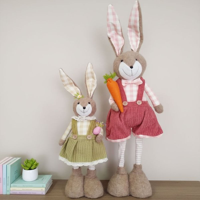 Dupla Boneco Coelho Decoração Páscoa Com Pernas Ajustáveis - Encante sua decoração de Páscoa com esta linda dupla de coelhos decorativos, perfeitos para dar um toque especial, aconchegante e temático ao seu ambiente Destaques do produto: 2 coelho com pernas ajustáveis, permitindo ajustar a altura e a posição conforme a decoração Decoração de Páscoa residencial ou comercial Combina com salas, entradas, mesas decoradas, vitrines e ambientes comerciais Medidas: Altura 60cm x Largura 20cm x Comprimento 15cm Altura 90cm x Largura 20cm x Comprimento 15cm Conteúdo da embalagem: 1x Coelho com pernas ajustáveis de 60cm 1x Coelho com pernas ajustáveis de 90cm Características Gerais do Produto: • Material: Pelúcia • Modelo: Boneco De Páscoa • Cor: Verde; Vermelho • Dimensões aproximadas: 90cm x 60cm Garantia: • Garantia do site - 1 Mês