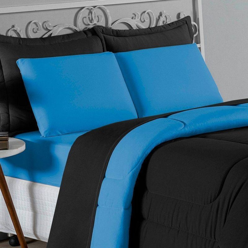 Edredom King Nobre 1 Peça Dupla Face 2,50m X 2,90m Malha 100% Algodão - Preto / TurquesaTransforme seu quarto em uma suíte de luxo com o Edredom King Nobre. Com dimensões grandiosas e o toque inconfundível da malha 100% algodão, esta peça é sinônimo de elegância e bem-estar para camas King Size.Por que o Edredom King Nobre é a escolha perfeita?- Maxi Conforto King Size: Com impressionantes 2,50m x 2,90m, oferece cobertura total e um caimento majestoso para camas King, garantindo que ninguém fique descoberto durante a noite.- Toque de Seda da Malha: Produzido em 100% Algodão com Fio 30/1 Penteado, proporciona um contato extremamente macio, natural e respirável com a pele.- Tecnologia Fio Penteado: O tratamento especial das fibras resulta em um tecido mais puro e resistente, que não forma bolinhas (anti-pilling) e mantém a maciez por muito mais tempo.- Versatilidade e Estilo: Sendo dupla face e liso, permite variar a decoração do ambiente com facilidade, combinando com diferentes estilos de roupa de cama.Produto composto por (Total 01 Peça):01 Edredom King Dupla Face 2,50m x 2,90mComposição:Tecido: Malha 100% Algodão - Fio 30/1 PenteadoEnchimento: 100% Poliéster Siliconada