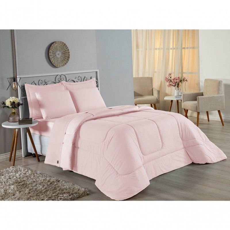 Edredom Queen Nobre 1 Peça Dupla Face 2,20m X 2,40m Malha 100% Algodão - RosaGaranta o aconchego que sua cama Queen merece com o Edredom Queen Nobre. Uma peça essencial para quem busca a combinação ideal entre o conforto térmico e a suavidade incomparável do algodão em fio penteado.Por que o Edredom Queen Nobre é uma ótima escolha?- Toque de Malha Premium: Confeccionado em 100% Algodão com Fio 30/1 Penteado, oferece uma sensação de abraço, sendo extremamente macio ao toque.- Design Dupla Face: Com acabamento liso em ambos os lados, permite diversas composições na decoração do quarto, unindo praticidade e estilo.- Qualidade Superior: O processo de fio penteado garante um tecido mais uniforme, resistente e livre de bolinhas, mantendo a beleza da peça por muito mais tempo.- Conforto Térmico Ideal: O enchimento em fibra de poliéster siliconada proporciona o volume certo para aquecer sem pesar, garantindo noites de sono perfeitas.Produto composto por (Total 01 Peça):01 Edredom Queen Dupla Face 2,20m x 2,40mComposição:Tecido: Malha 100% Algodão - Fio 30/1 PenteadoEnchimento: 100% Poliéster Siliconada