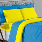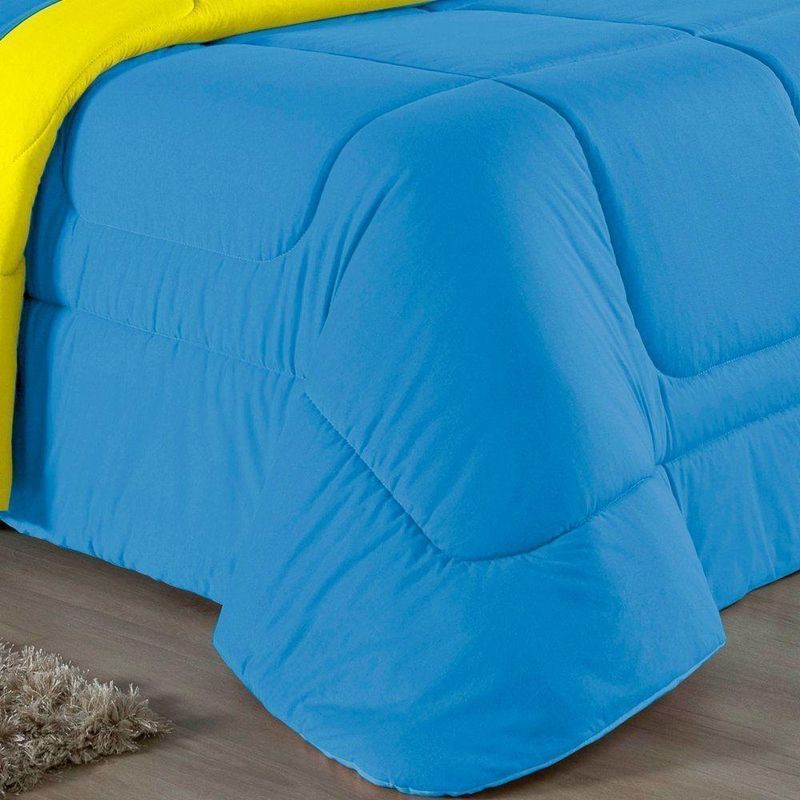 Edredom Queen Nobre 1 Peça Dupla Face 2,20m X 2,40m Malha 100% Algodão - Turquesa / AmareloGaranta o aconchego que sua cama Queen merece com o Edredom Queen Nobre. Uma peça essencial para quem busca a combinação ideal entre o conforto térmico e a suavidade incomparável do algodão em fio penteado.Por que o Edredom Queen Nobre é uma ótima escolha?- Toque de Malha Premium: Confeccionado em 100% Algodão com Fio 30/1 Penteado, oferece uma sensação de abraço, sendo extremamente macio ao toque.- Design Dupla Face: Com acabamento liso em ambos os lados, permite diversas composições na decoração do quarto, unindo praticidade e estilo.- Qualidade Superior: O processo de fio penteado garante um tecido mais uniforme, resistente e livre de bolinhas, mantendo a beleza da peça por muito mais tempo.- Conforto Térmico Ideal: O enchimento em fibra de poliéster siliconada proporciona o volume certo para aquecer sem pesar, garantindo noites de sono perfeitas.Produto composto por (Total 01 Peça):01 Edredom Queen Dupla Face 2,20m x 2,40mComposição:Tecido: Malha 100% Algodão - Fio 30/1 PenteadoEnchimento: 100% Poliéster Siliconada