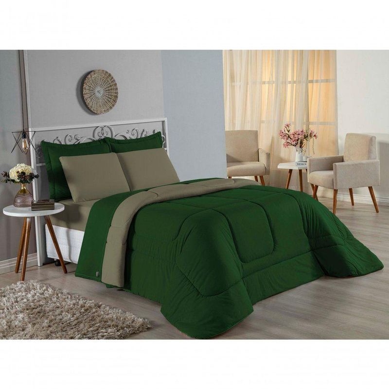 Edredom Solteiro Nobre 1 Peça Dupla Face 1,60m X 2,40m Malha 100% Algodão - Verde-bandeira / AvelãTransforme suas noites de sono com o conforto supremo do Edredom Solteiro Nobre. A escolha ideal para quem não abre mão da maciez extrema e de um visual clean e moderno para o quarto.Por que o Edredom Nobre é a escolha perfeita?- Toque Extremamente Macio: Confeccionado em Malha 100% Algodão com Fio 30/1 Penteado, este edredom oferece uma sensação suave na pele, garantindo um descanso muito mais acolhedor.- Versatilidade Dupla Face: O modelo é dupla face e liso, permitindo variar a decoração da cama com facilidade e praticidade.- Aconchego na Medida Certa: Seu enchimento em fibra siliconada proporciona o volume e o aquecimento ideais para noites agradáveis.- Alta Qualidade: O fio penteado passa por um processo que retira as fibras mais curtas e impurezas, resultando em um tecido mais resistente e que não forma bolinhas com facilidade.Produto composto por (Total 01 Peça):01 Edredom Solteiro Dupla Face 1,60m x 2,40mComposição:Tecido: Malha 100% Algodão - Fio 30/1 PenteadoEnchimento: 100% Poliéster Siliconada