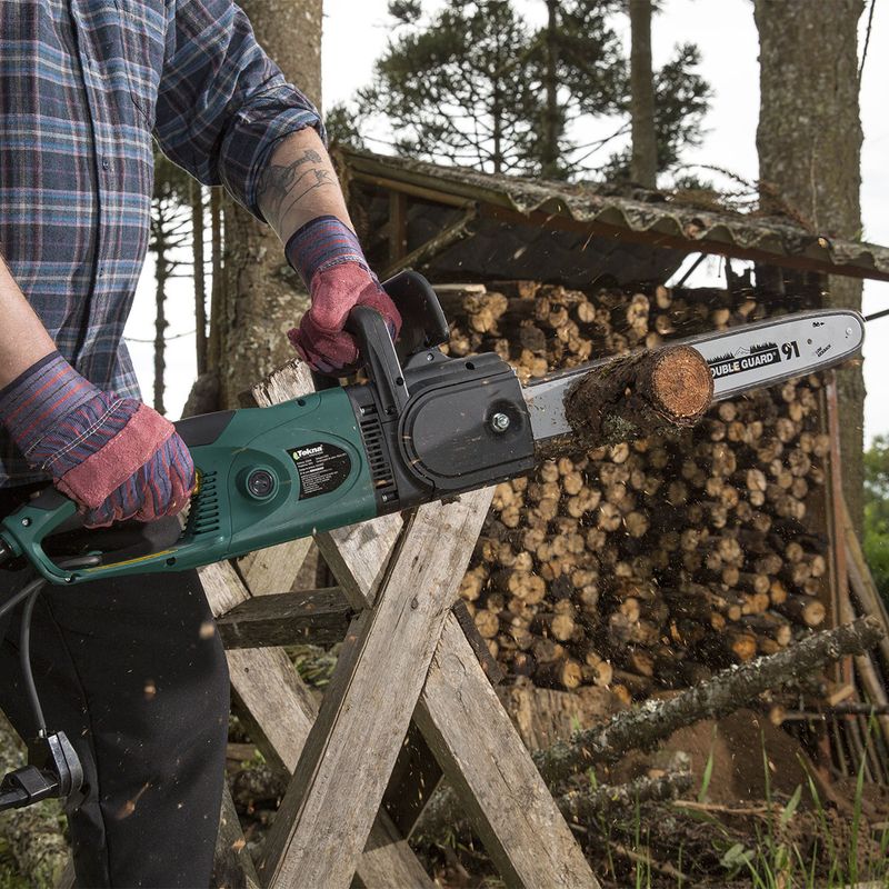 Cód. Fornecedor: ES22002Marca: Tekna• Potência do motor 2200W• Sabre de 18”• Tensão 220 V• Frequência 60 HzA Eletrosserra Tekna ES22002 possui motor universal com escovas de 2200 W de potência, sabre e corrente Oregon, que oferecem alta performance e desempenho no corte. • Com Sabre e Corrente Oregon• Proteção Contra Rebote• Sistema Bi-manual de Segurança Informações AdicionaisIndicada para trabalhos frequentes com madeiras em geral, a Eletrosserra Tekna ES22002 oferece alto poder de corte e segurança na operação. Com gatilho de segurança e corrente de baixo rebote, garantem a proteção necessária ao operador. A lubrificação automática da corrente proporciona maior vida útil e baixa manutenção do produto. Conta com KIT de ferramentas e capa para o sabre.