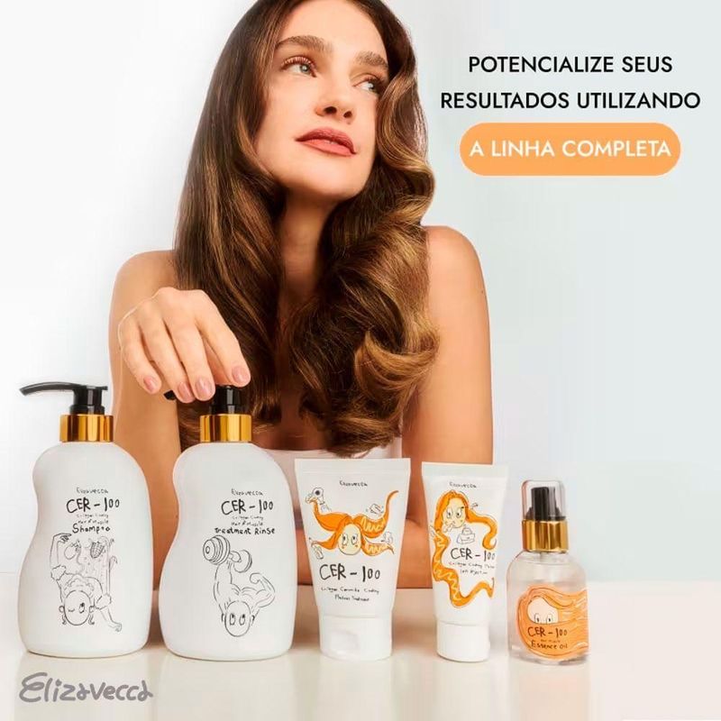 Elizavecca Cer-100 Proteína Ionizada E Colágeno - Máscara Capilar 50mlElizavecca CER-100 Proteína Ionizada e Colágeno é uma máscara capilar sem enxágue desenvolvida para restaurar, fortalecer e proteger fios danificados, quebradiços e enfraquecidos. Sua fórmula combina proteínas ionizadas e colágeno, que penetram profundamente na fibra capilar, repondo massa, melhorando a elasticidade e aumentando a resistência dos fios. O produto sela as cutículas, reduz frizz, controla pontas duplas e proporciona brilho imediato sem pesar. Ideal para cabelos fragilizados por química, calor excessivo ou agressões externas do dia a dia, garantindo tratamento contínuo ao longo do dia.Características:Marca: ElizaveccaLinha: CER-100Categoria: Tratamento Capilar Sem EnxágueIndicação: Cabelos danificados, quebradiços, ressecados e frágeisBenefícios: Fortalecimento, brilho, nutrição, proteção e reparação contínuaModo de Aplicação:Aplicar uma pequena quantidade nos cabelos limpos e úmidos, distribuindo uniformemente do comprimento às pontas. Não enxaguar. Pode ser reaplicado nas pontas com o cabelo seco para controle de frizz e alinhamento extra.Especificações do Produto:Tipo de Produto: Máscara Capilar Sem EnxágueAção: Reconstrução, hidratação e proteçãoAtivos: Proteína ionizada, colágeno e aminoácidosIndicação: Todos os tipos de cabeloTextura: Creme leve de rápida absorçãoLinha: CER-100Nome do Produto: Proteína Ionizada e ColágenoVersão: Sem EnxágueBenefícios do Produto:Eficácia: Reforça a fibra capilar com proteína e colágeno, devolvendo elasticidade e força.Durabilidade: Mantém o efeito de tratamento durante todo o dia, reduzindo frizz e quebra.Versatilidade: Pode ser usado como leave-in diário, finalizador e reparador nutritivo.Design ou Praticidade: Embalagem compacta e prática para levar na bolsa ou viagens.Elizavecca CER-100 Proteína Ionizada e Colágeno é um tratamento sem enxágue potente que revitaliza, fortalece e protege os fios, promovendo reconstrução profunda e brilho imediato. Ideal para cabelos que precisam de reposição proteica e cuidados contínuos ao longo do dia.Nome do produto - Elizavecca CER-100 Proteína Ionizada e Colágeno - Máscara CapilarTipos de Cabelo - Quebradiços ou DanificadosNavegue por - Hidratação Reconstrução Nutrição e Reparação