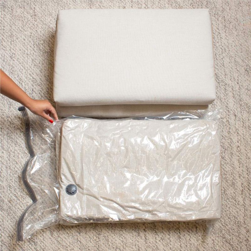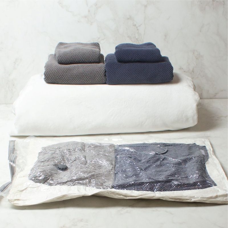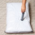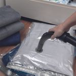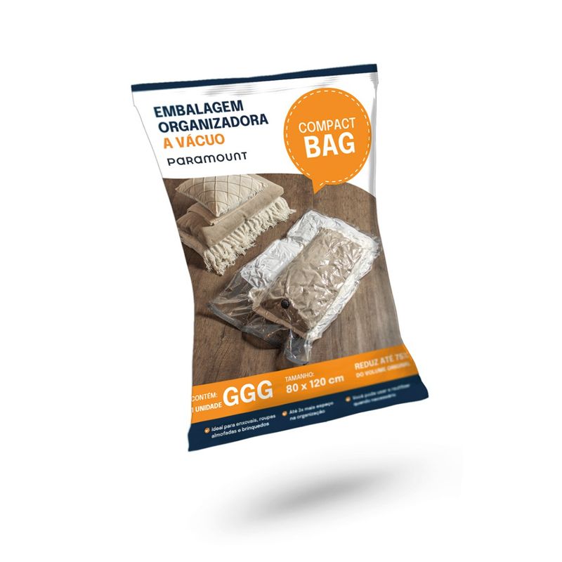 Embalagem a Vácuo GGG Compact Bag Paramount 80 x 120 cm Detalhes do Produto: Com a Embalagem a Vácuo Compact Bag você ganha 3x mais espaço nas malas e armários e ainda protege suas roupas, enxovais, almofadas e toalhas contra a poeira, odores e mofos. Impermeável e reutilizável, pode ser usado com a bomba manual ou com aspirador de pó. Sua transparência facilita a visualização do que está armazenado e auxilia na organização. OBS: Não acompanha a bomba de ar manual. Cuidados: Não embalar itens molhados ou sujos, produtos em couro, alimentos e objetos com pontas ou arestas que podem rasgar a embalagem. Manter fora do alcance das crianças. Material: PET + PE + PP Medidas: 80 cm largura x 120 cm altura Itens inclusos: 1 unidade da Embalagem a Vácuo GGG Compact Bag 80 x 120 cm Garantia do fornecedor: 3 meses