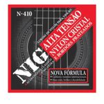 Encordoamento NIG N-410 | Violão Nylon | Tensão Alta O encordoamento NIG Music N-410 é produzido com materiais importados e segue o padrão internacional de medidas, garantindo total compatibilidade com instrumentos de diversas marcas e estilos. Bordões: alma em nylon cristal encapado com metal prateado, proporcionando graves profundos e definidos. Primas: nylon cristal, resultando em agudos macios, equilibrados e de longa durabilidade. Diferencial: kit com 6 cordas + 1 corda extra (4ª RÉ), ideal para músicos que estão sempre em atividade. Com timbre reconhecido e aprovado por grandes nomes da música, as cordas NIG N-410 oferecem o equilíbrio perfeito entre pegada, precisão e musicalidade ? seja no estúdio, no palco ou na prática diária.