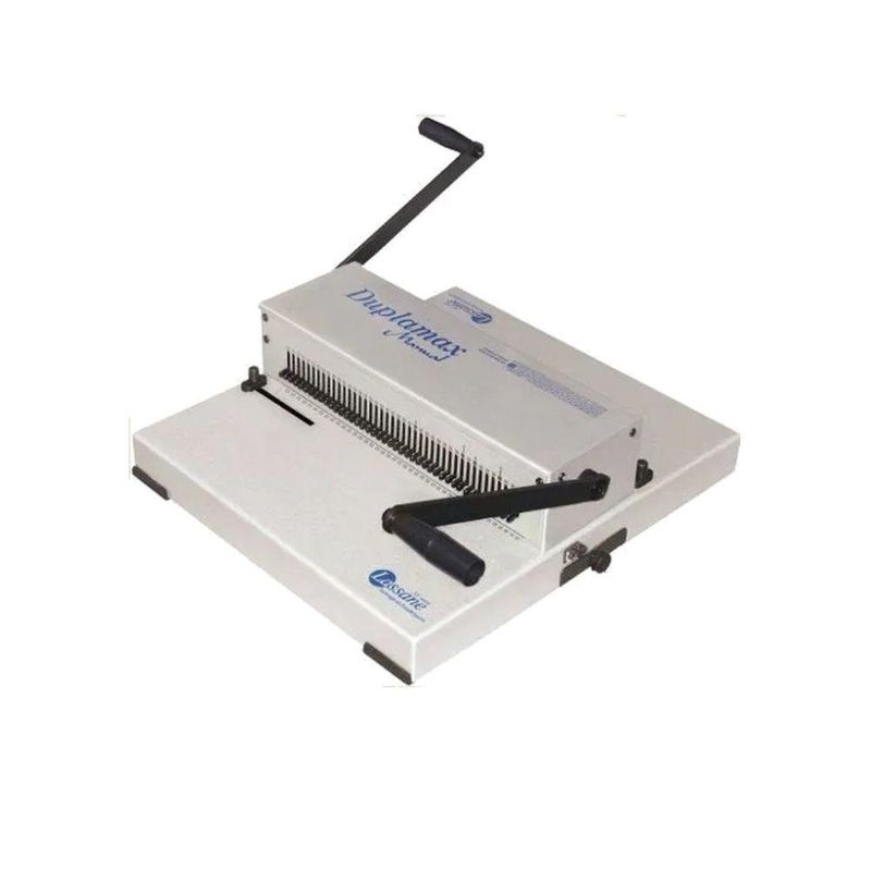 Encadernadora Duplo Anel (wire-o) Duplamax Lassane 3x1 E 2x1Encadernadora Duplo Anel (wire-o) Duplamax Lassane 3x1 e 2x1 - Furo Quadrado A Duplamax manual é uma perfuradora manual para encadernações com espiral de duplo anel, permitindo perfurações de até 20 folhas por vez, nos passos 2x1 e 3x1 simultaneamente, sem necessidade de troca da ferramenta. Simples de operar e com dimensões reduzidas, possui uma gaveta especial para depósito dos resíduos. Faça perfuração para Duplo Anel, opção de em uma única máquina escolher o passo 3x1 ou 2x1 Assista ao vídeo para verificar o funcionamento simples e prático! A Duplamax manual é indispensável nos escritórios modernos. Informações do Produto Regulagem do Margeador - Lado 2x1 e 3x1: Para que sua encadernação não fique com meio furo nas extremidades, oriente-se através da gravação existente na base (des. 1). Não conseguindo esta centralização, anule os punções necessários (ver sistema para anular punção). Definida a posição ideal, libere o margeador através da alavanca e movimente-o até encostar no papel, trave-o nesta posição. OBSERVAÇÃO: O sistema de anulação de punções, encontra-se somente na furação 3x1 nas medidas padrões (A5 - Carta / Carta - A4 / Oficio). Sistema de Anulação do Punção para Furação em 3x1: 1 - Mover a alavanca para cima 2 - Puxar os seletores para anulação de qualquer furo que corresponde ao mesmo. 3 - Para voltar o seletor a alavanca deve ser mantida na posição para cima. Sistema de Anulação do Punção para Furação de Papel Ofício em 2x1: 1 - Colocar a alavanca no posicao (A) 2 - Escolher o formato desejado a ser perfurado. 3 - Colocar a chave ALLEN, 5/32’ no parafuso desejado, e afrouxa-lo totalmente até a borda do ferro quadrado (pos. 1) OBSERVAÇÃO: Para perfurar outro formato, apertar o parafuso allem anterior. Furação Padrão: Passo 3x1’ - Furo 4mm Furacão Disponível: Passo 3x1 furo quadrado de 4mm - Passo 2x1 furo quadrado de 5.4mm - Furacão especial sob consulta Trabalhos Possíveis: Passo 2x1 - Furo 5.4mm Especificações Técnicas: Extensão de perfuração: 353mm Passo disponível : 2x1 e 3x1 Tamanho da mesa: 490 x 440 x 150mm Capacidade de perfuração: 20 folhas